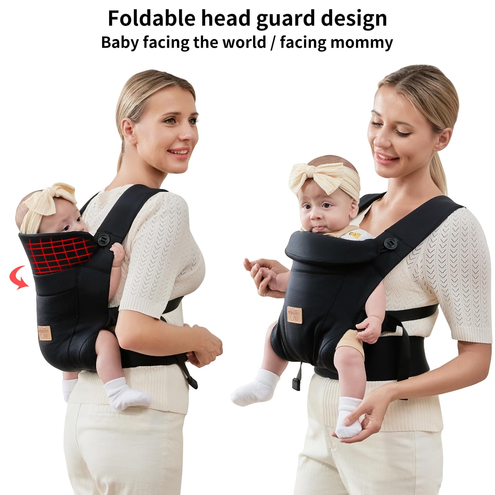 Nosidełko dla niemowląt nosidełko dla noworodków od urodzenia ergonomiczne nosidełko dla niemowląt z regulowanym paskiem nosidełko na brzuch na plecach lekkie i oddychające – 0 do 2 lat (czarne z paskiem)
