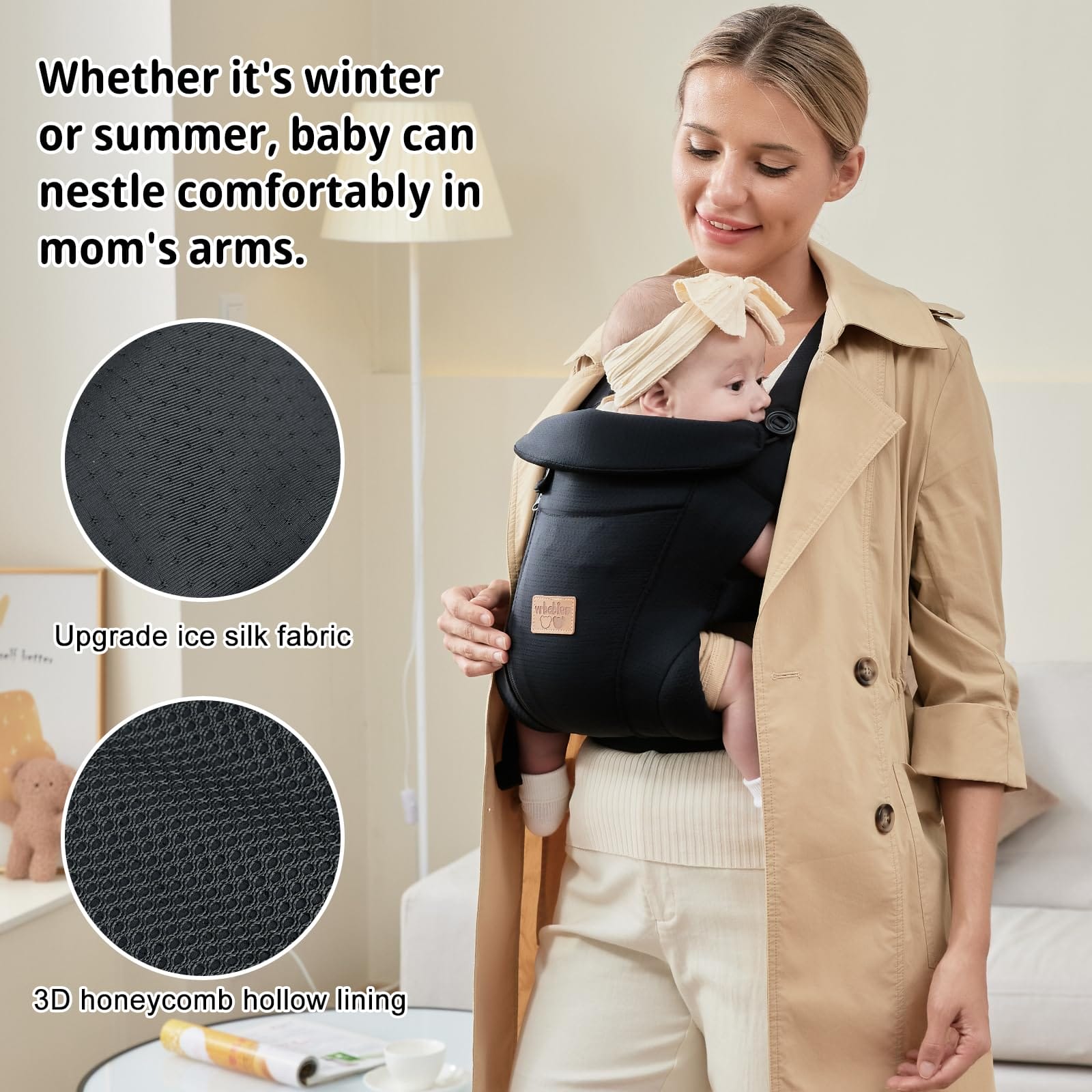 • Oddychające nosidełko dla noworodka: Aby zapewnić Tobie i Twojemu maluchowi chłód i wygodę, nasze nosidełko jest wyściełane oddychającą siateczką 3D! Ponieważ nosidełko dla noworodków jest wykonane z wysokiej jakości lodowego jedwabiu, wchłania pot i szybko schnie. Jest trwały, oddychający, przyjazny dla środowiska i miękki, nie uszkadza skóry. Jeśli musisz zabrać ze sobą dziecko, jest to z pewnością najlepszy wybór na letnie upały na świeżym powietrzu i na zakupy.