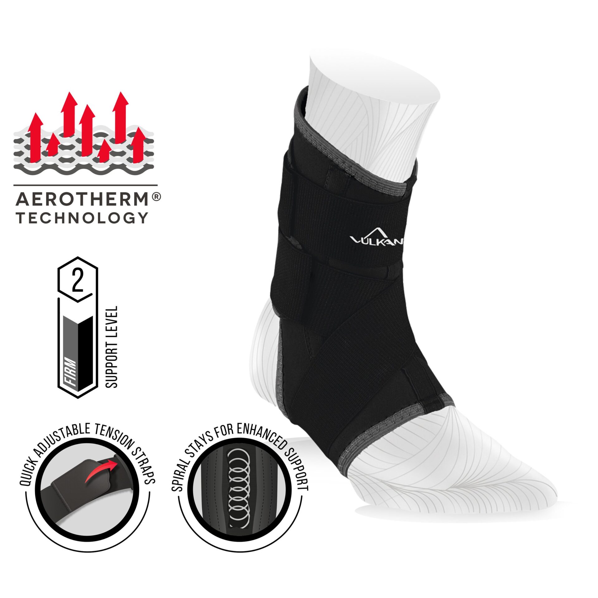 VULKAN Klasyczna orteza na lewą kostkę, średnia, wsparcie kostki na zwinięte kostki, skręcenia i nadwyrężenia, rękaw kompresyjny dla sportowców i ćwiczeń, stabilizator przy urazach Achillesa i