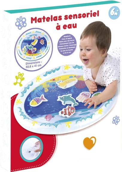 ✅ Materac sensoryczny z: Materac sensoryczny z wodą: napełnij matę dziecka wodą. Potem będzie się dobrze bawić, pływając na nich ryby. Mata o długości 50 cm. Od 6 miesięcy.