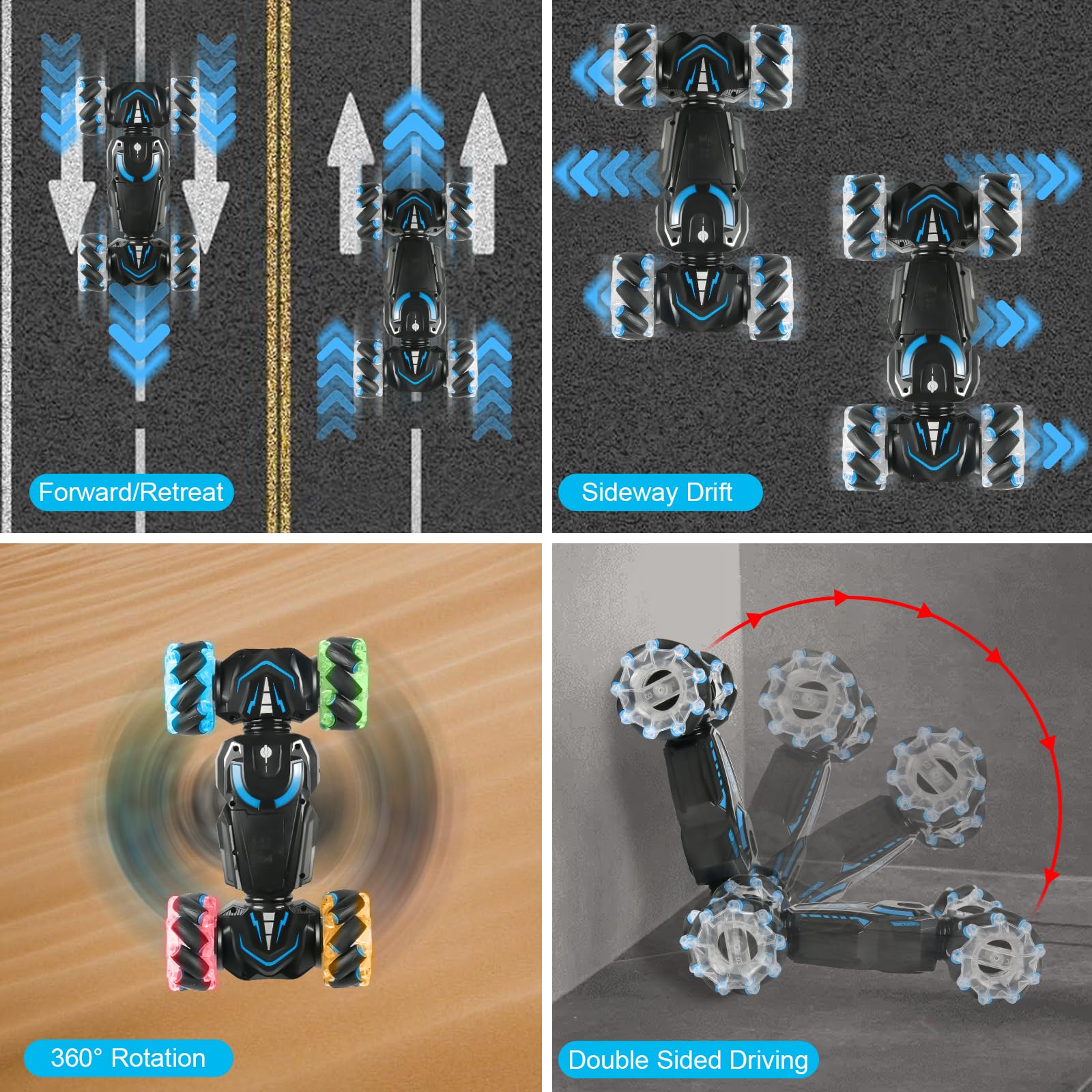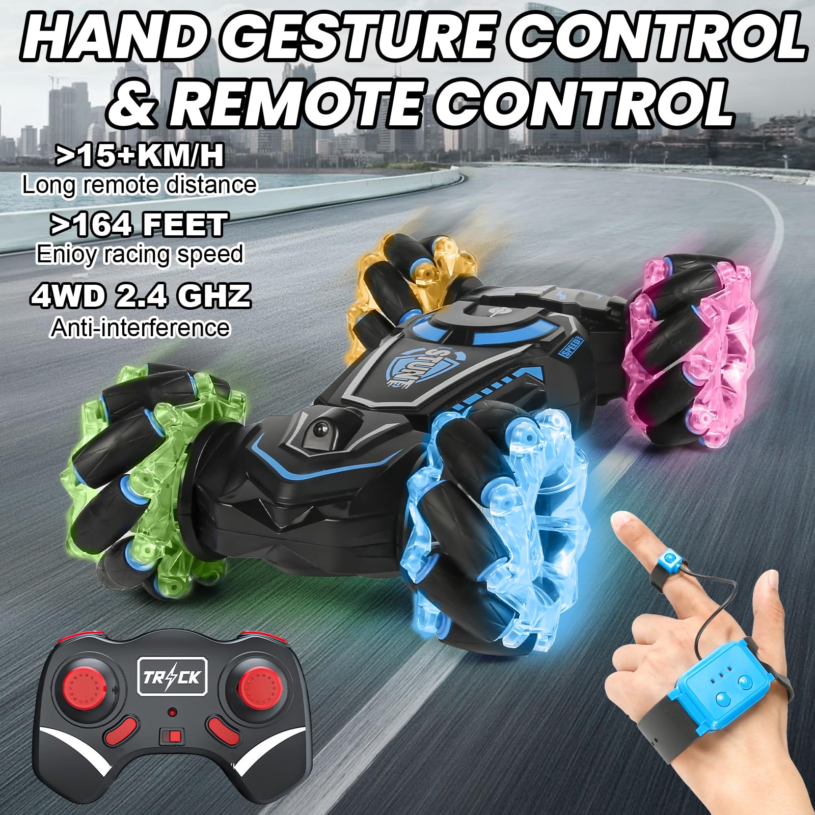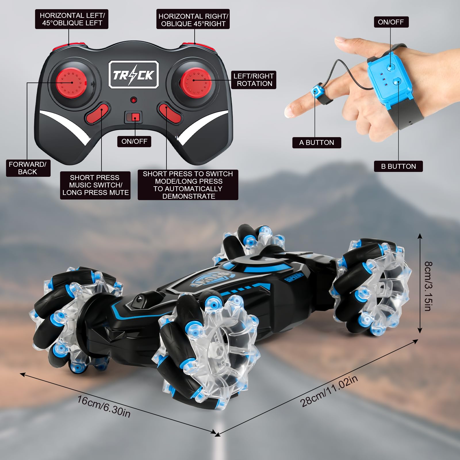 Niezwykłą cechą tego samochodu zdalnie sterowanego jest możliwość sterowania gestami. Oprócz standardowego pilota, samochód jest również wyposażony w pilot z czujnikiem gestów. Wystarczy poruszać ręką lub obracać nadgarstkiem, aby sterować samochodem za pomocą tego pilota. Jego duża wielkość (28x16x8 cm) zapewnia niezwykłe doświadczenia.