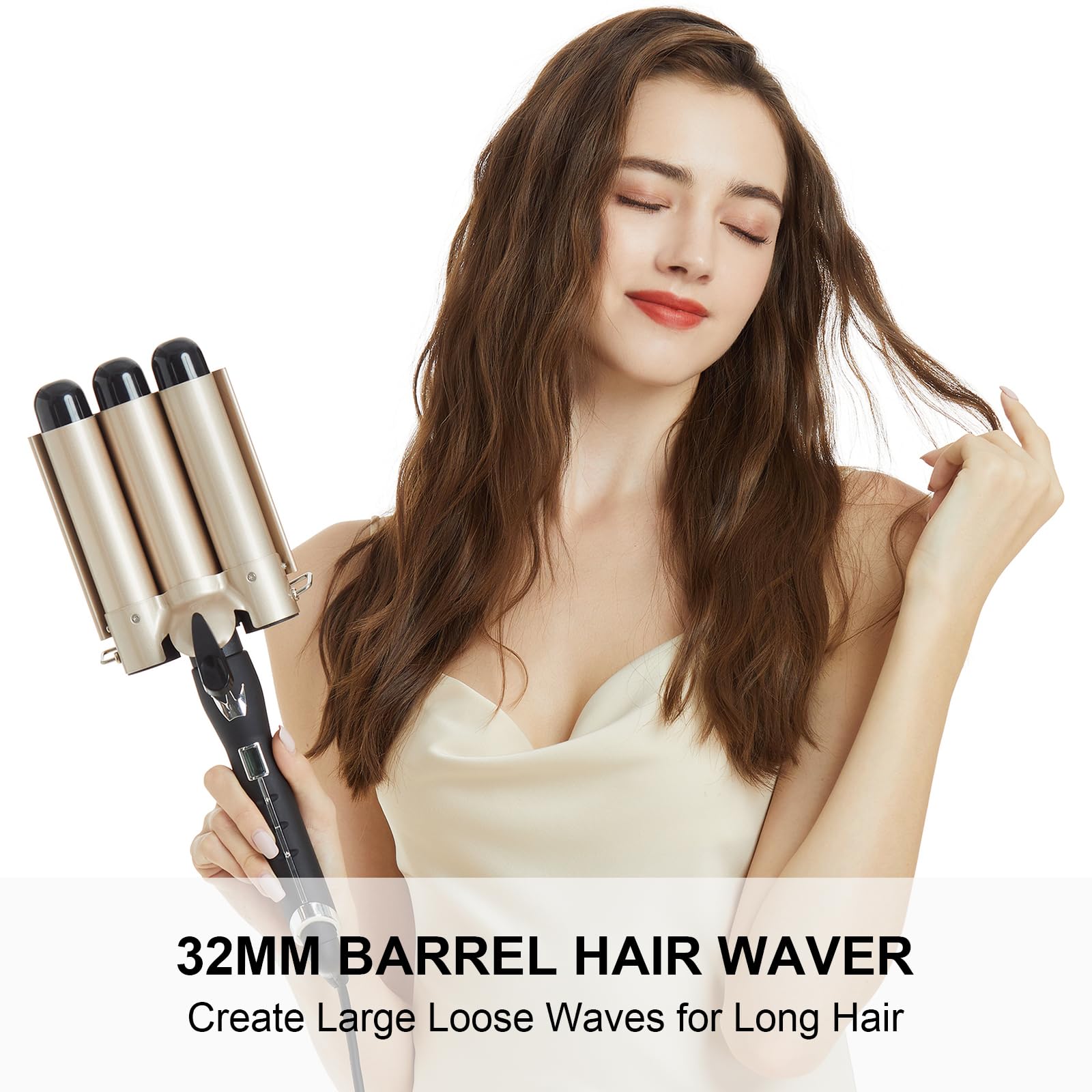 Falownica do włosów lokówka 32MM, AIMERVO LUŹNYCH FAL, 14 ustawienia temperatury 80-210°C, Antystatyczna powłoka ceramiczna, Szybkie 30-sekundowe nagrzewanie, Automatyczny wyłącznik bezpieczeństwa