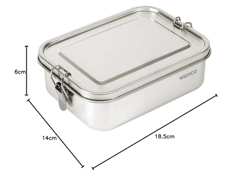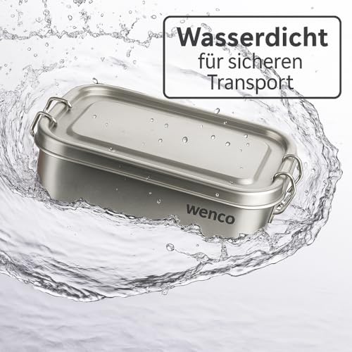 wenco Pudełko na lunch premium ze stali nierdzewnej, z 2 przegrodami, pudełko obiadowe 850 ml (1 zawartość netto), wodoodporne, nadające się do zmywarki, zawiera wymienny pierścień silikonowy, 18,5 x