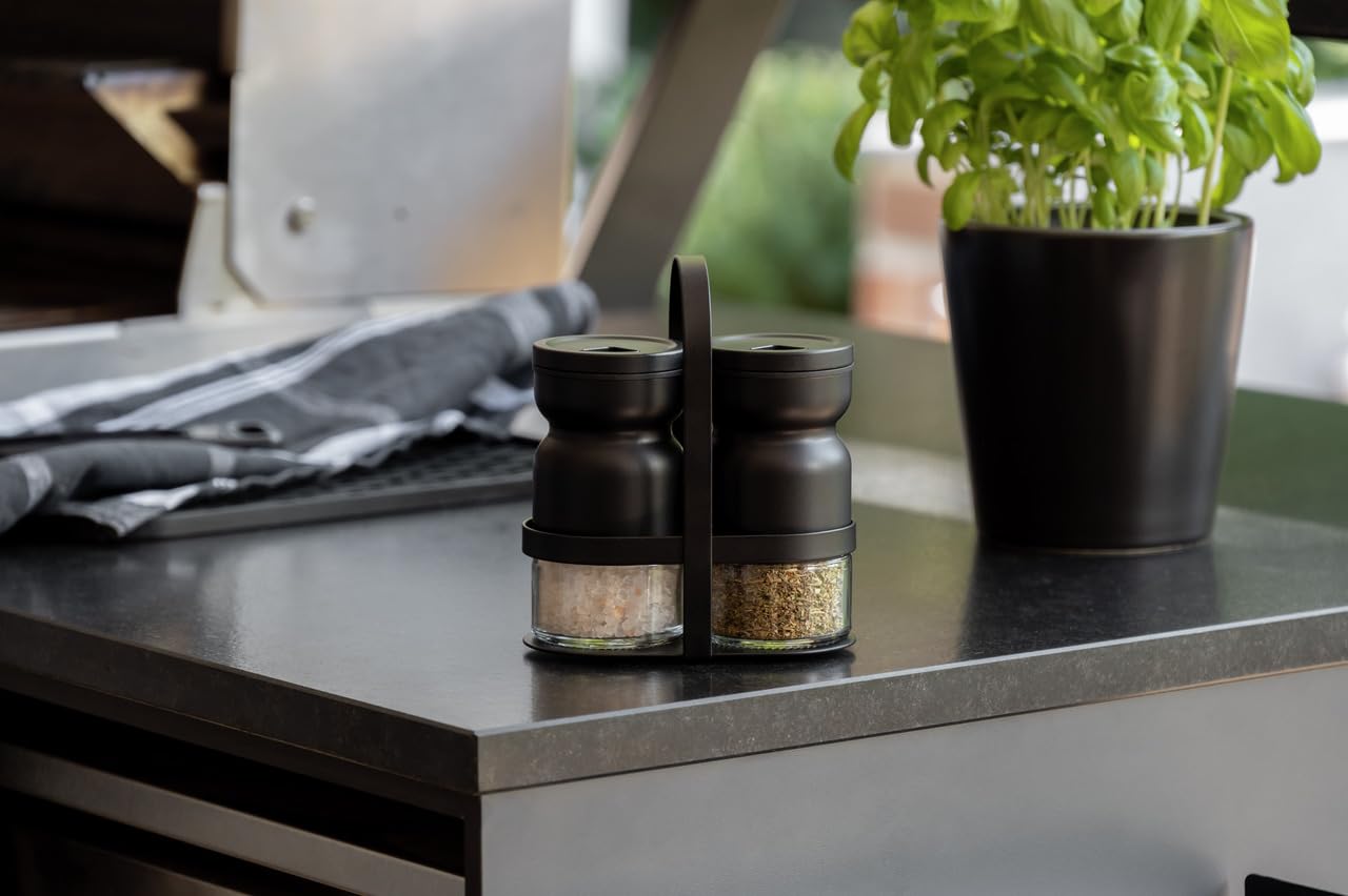 ✅ Zakres dostawy: 1: Zakres dostawy: 1 x pojemnik na przyprawy Melli, 3-częściowy zestaw z 2 pojemnikami na przyprawy i 1 uchwytem, pasuje do serii Black Outdoor Kitchen, wymiary (szer. x wys. x gł.): 12 x 6 x 14,5 cm, czarny/przezroczysty