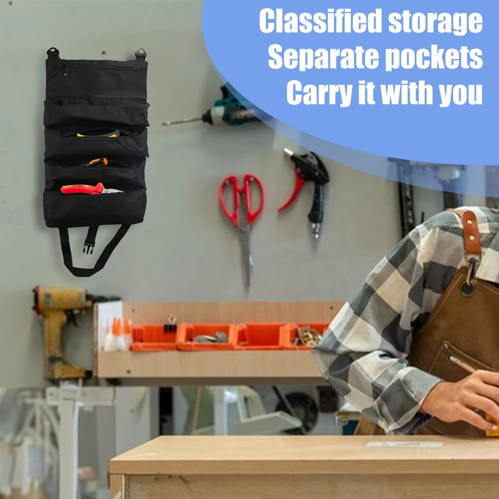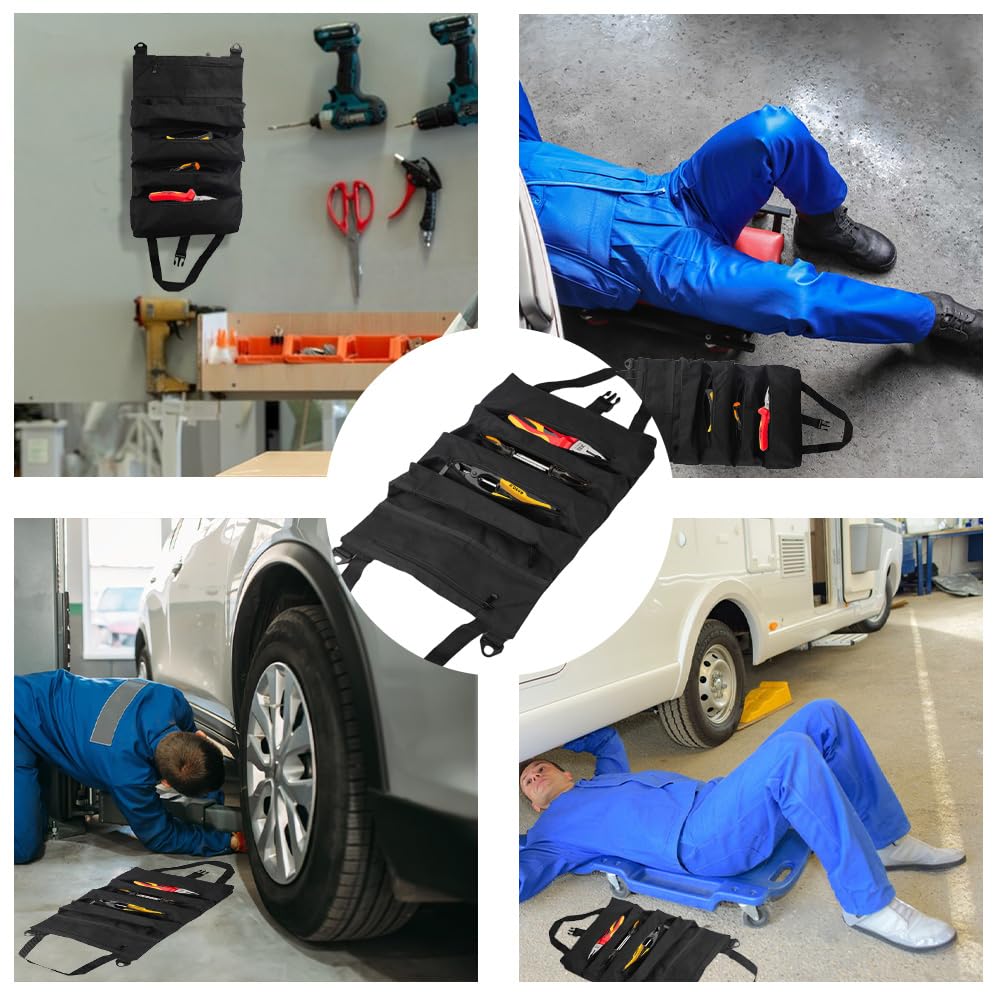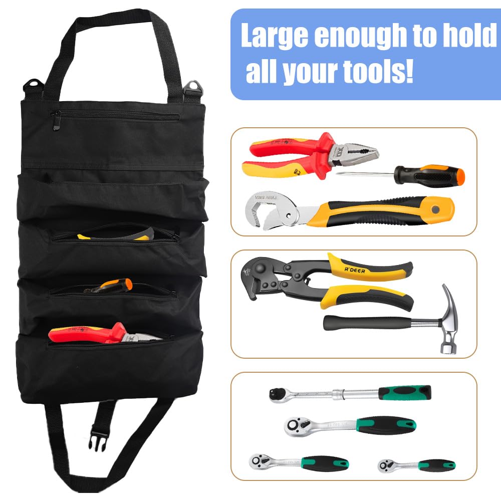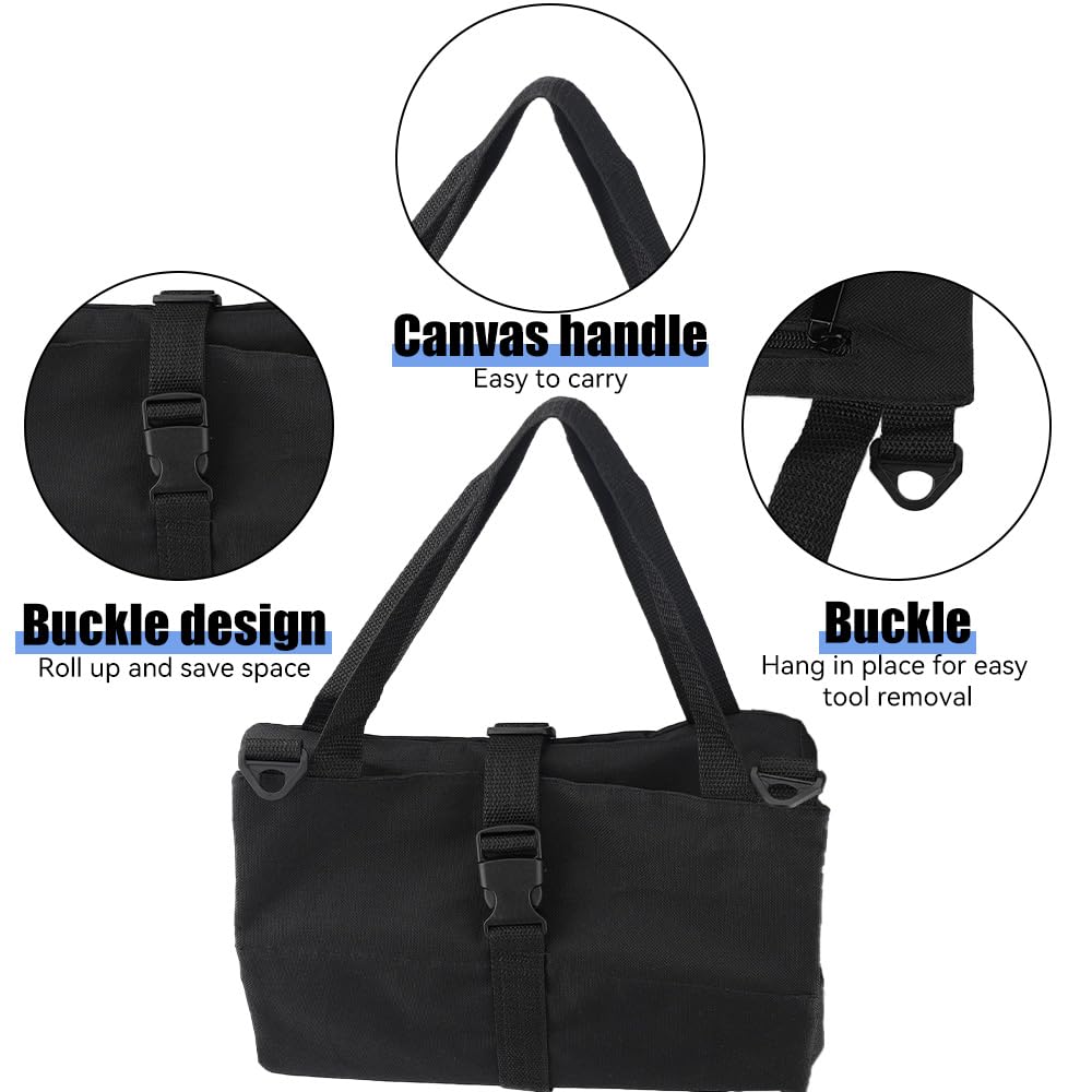 Torba na narzędzia torba na klucze do śrub z 5 kieszeniami na zamek błyskawiczny, odpowiednia dla rzemieślników, elektryków i napraw samochodowych (Czarna).