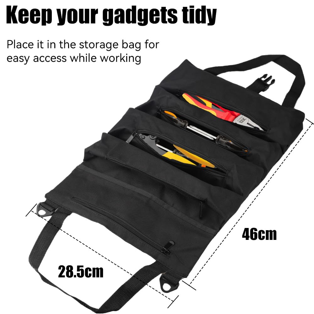 Główną cechą tej torby jest jej inteligentne zaprojektowanie, które umożliwia przechowywanie i organizację narzędzi w sposób uporządkowany. Znajdziesz w niej aż 5 kieszeni na zamek błyskawiczny, które pomogą Ci utrzymać porządek i zapewnić łatwy dostęp do potrzebnych narzędzi. Nie musisz już tracić czasu na szukanie kluczy do śrub czy innych drobnych narzędzi – wszystko będzie na swoim miejscu.