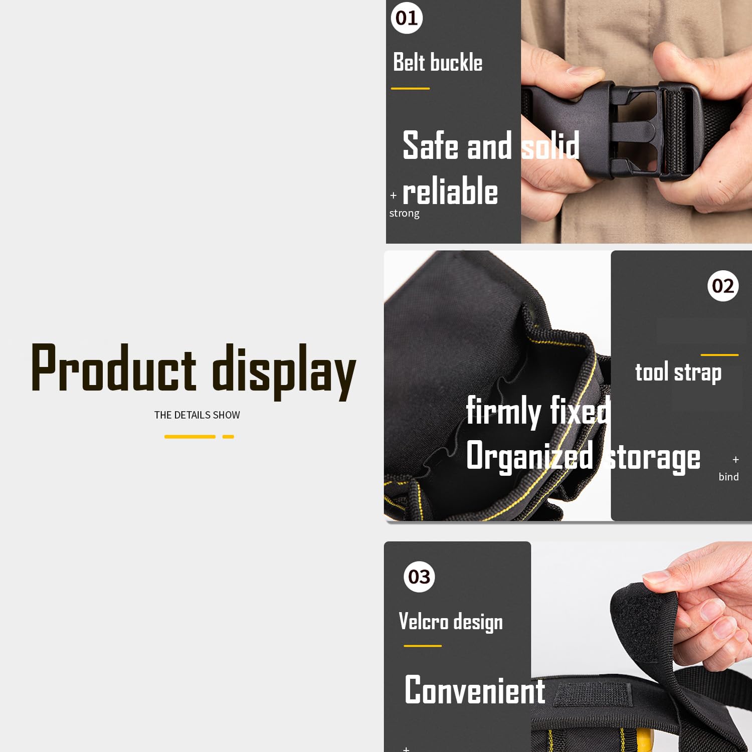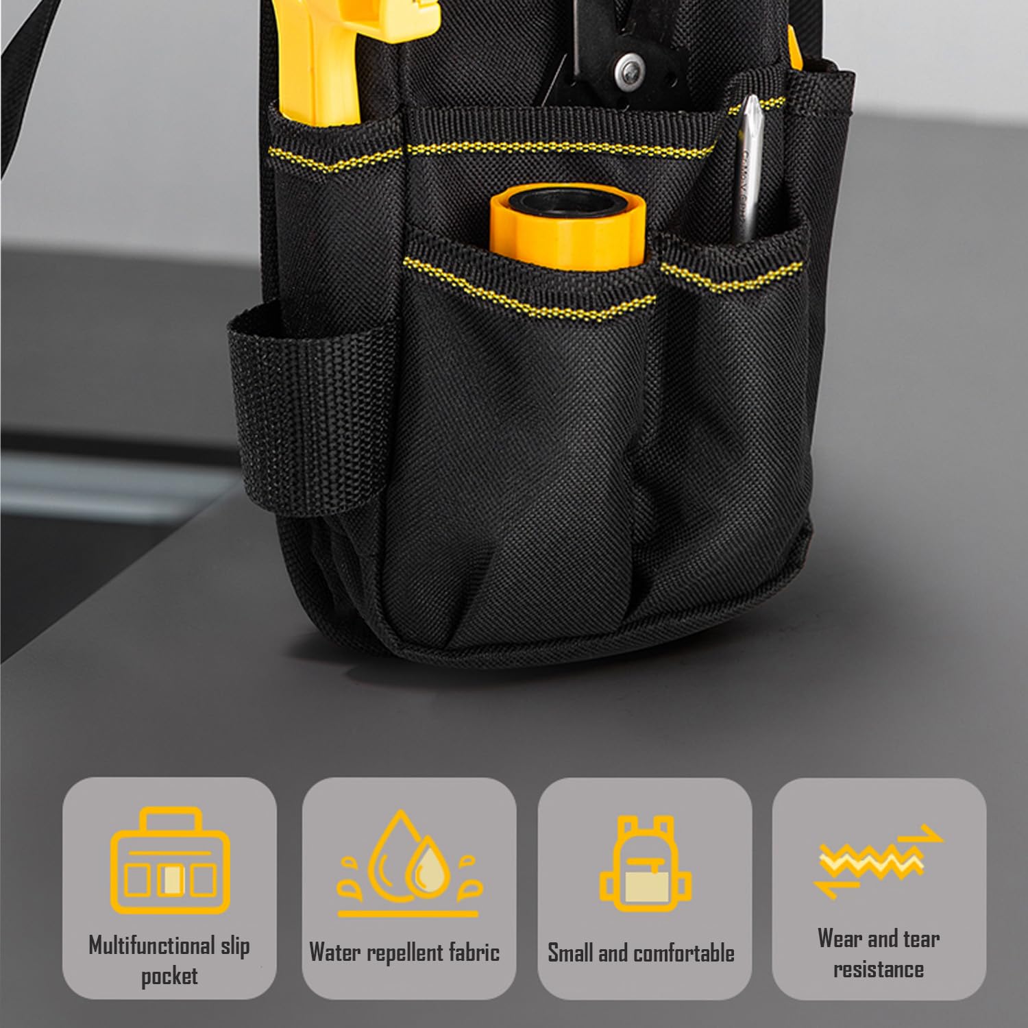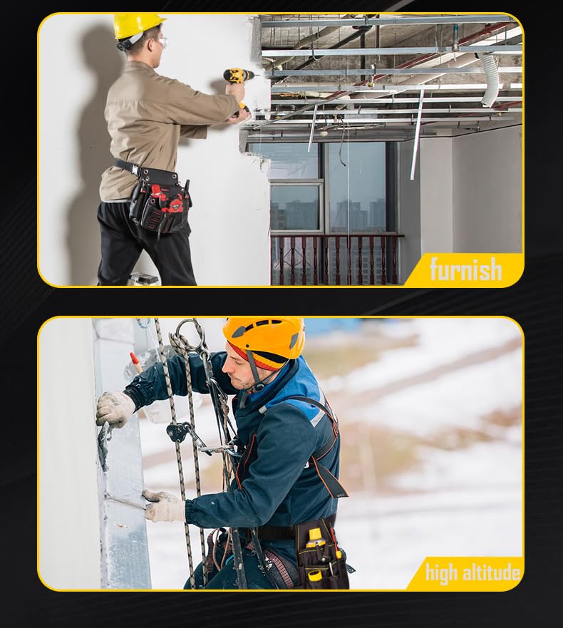 ✅ Pas narzędziowy jest: Pas narzędziowy jest wykonany z wysokiej jakości tkaniny Oxford. Materiał jest wodoszczelny i antypoślizgowy. Może być używany przez wiele lat.