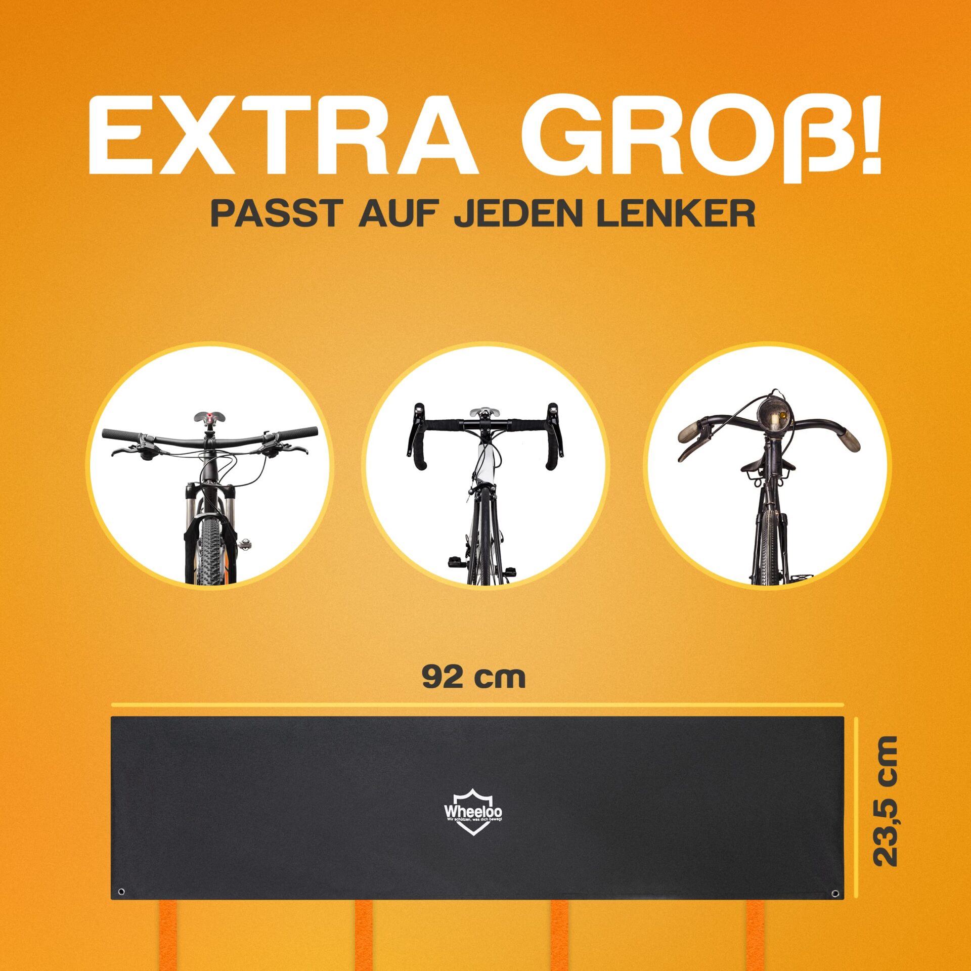 UNIWERSALNY FIT //: UNIWERSALNY FIT // Dzięki wymiarom 92 x 23,5 x 1,5 CM pokrowiec rowerowy pasuje do wszystkich typów kierownic, np. z uchwytem na telefon komórkowy!