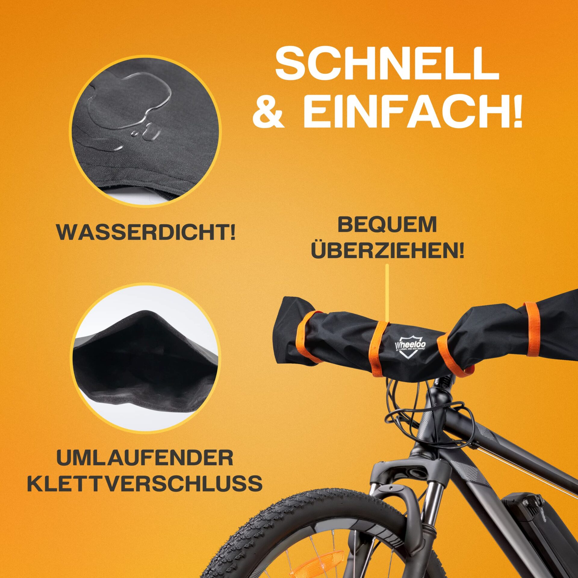 WODOODPORNY // Pokrowiec: WODOODPORNY // Pokrowiec na kierownicę Wheeloo jest niezwykle wytrzymały i wodoodporny dzięki zastosowaniu niezawodnej tkaniny 300D Oxford.