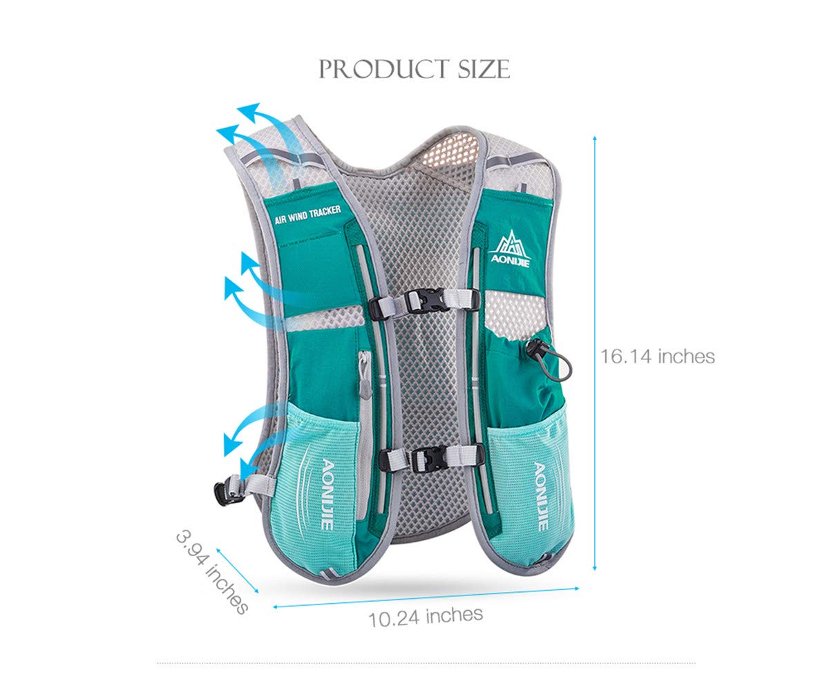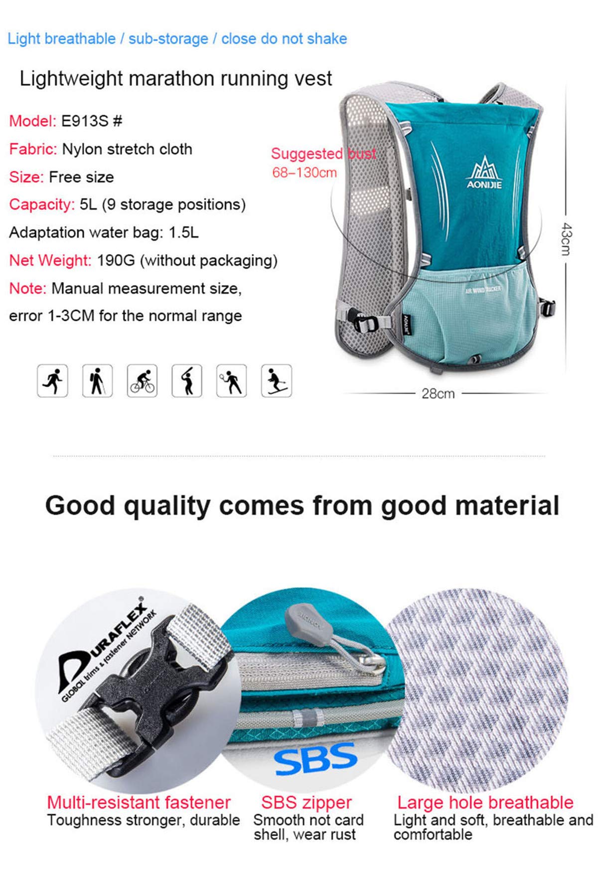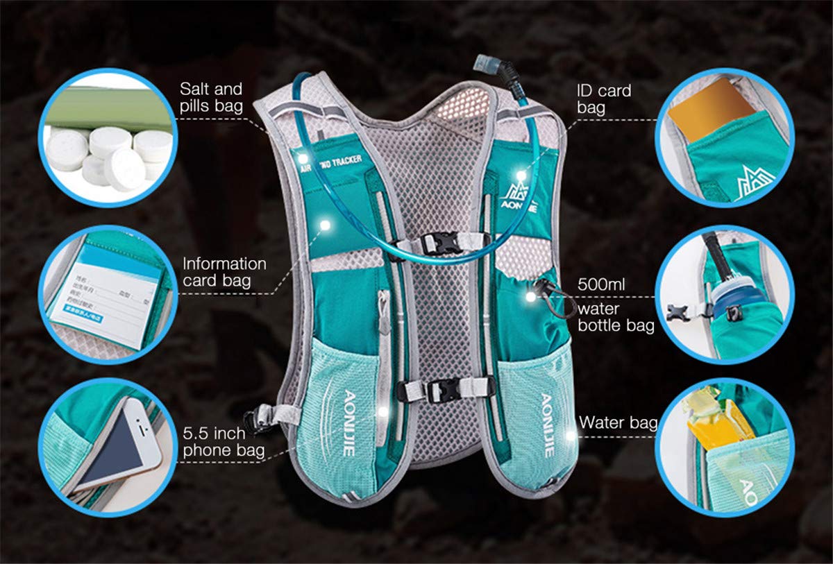 Lekki plecak 5 l do sportów na świeżym powietrzu, wyścigów szlakowych, maratonów, wędrówek, fitnessu, dla mężczyzn i kobiet (kolor morski z workiem na wodę 1,5 l)
