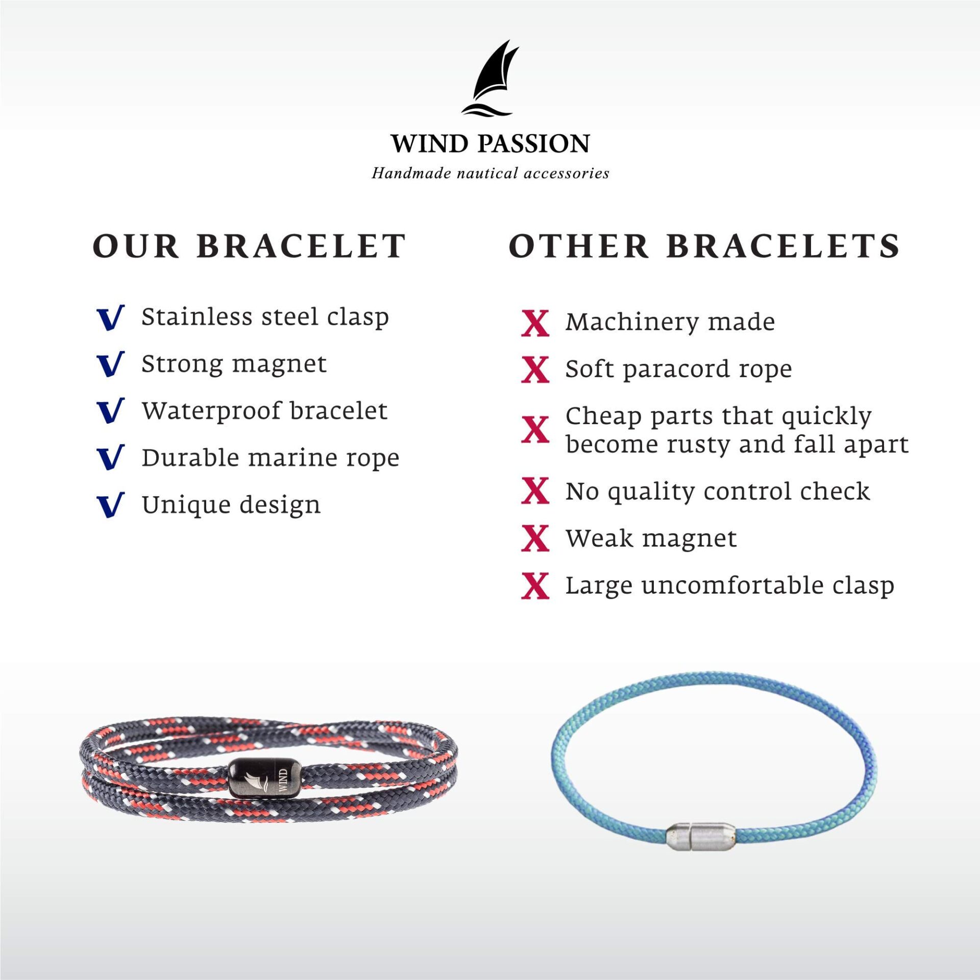 Wind Passion – Bransoletka magnetyczna Paracord dla mężczyzn i kobiet – Ręcznie robiona lina żeglarska – Summer Surfering Smycz – Prezent na Boże Narodzenie