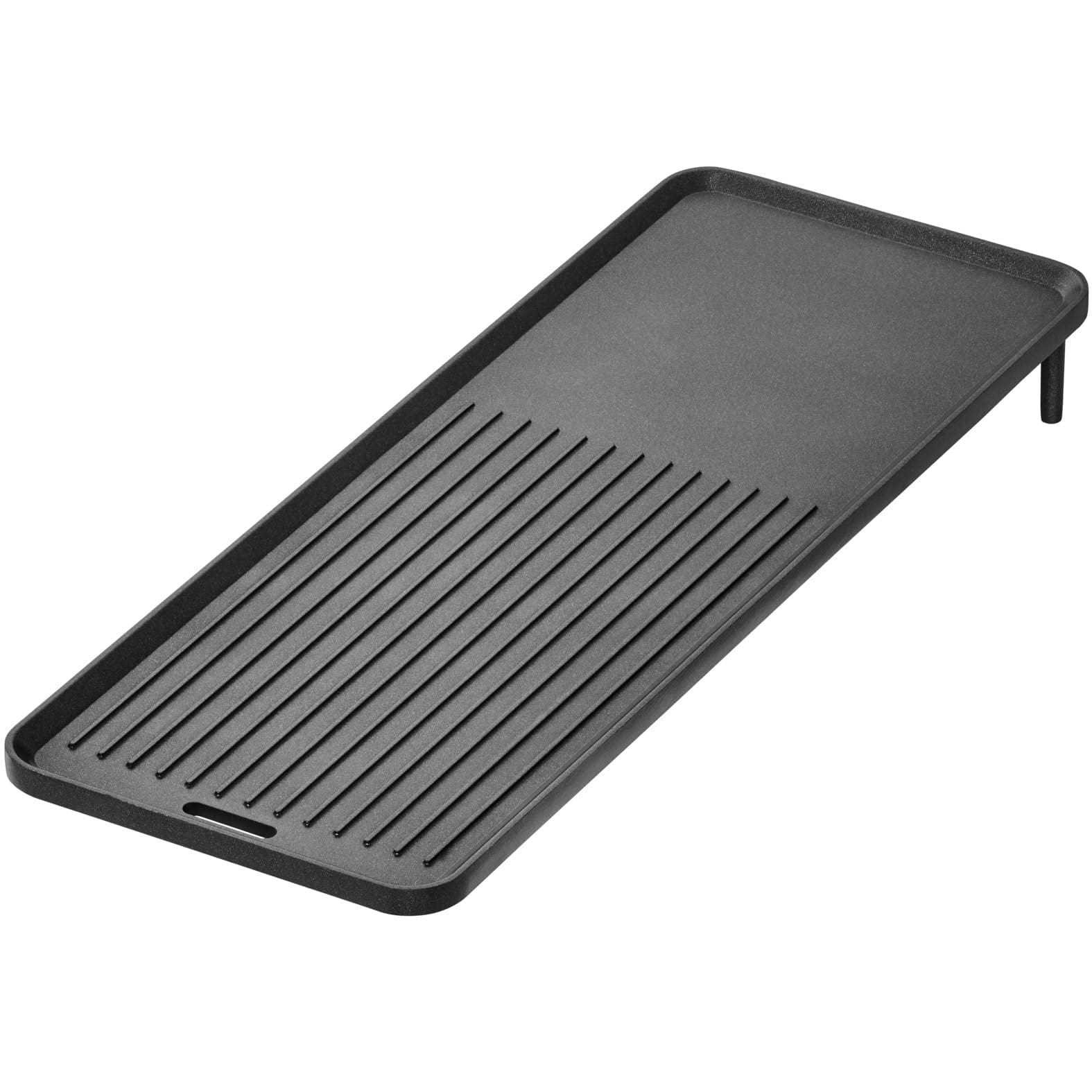 Grill stołowy WMF CE posiada również specjalne naczynie na warzywa, które umożliwia jednoczesne grillowanie mięsa i warzyw bez ich wzajemnego kontaktu. Można również wykorzystać to naczynie do oddzielnego smażenia lub duszenia warzyw. Wyjmowana tacka na tłuszcz i powierzchnia grillowa są zmywalne w zmywarce, co ułatwia czyszczenie po grillowaniu.