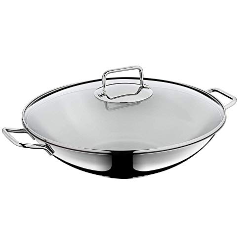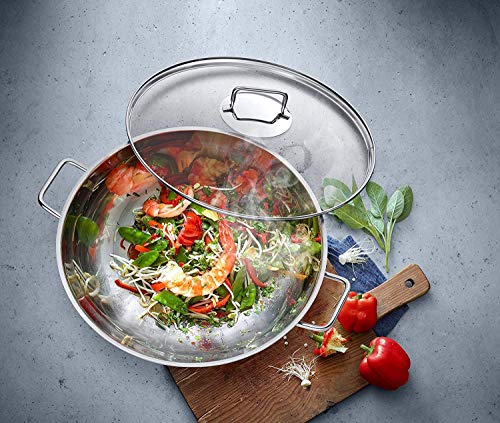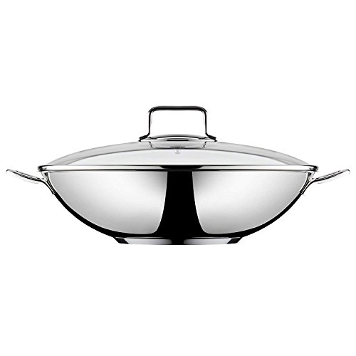 WMF Macao 2-częściowy zestaw do woków indukcyjnych, patelnia wok 36 cm ze szklaną pokrywką, polerowana stal nierdzewna Cromargan, niepowlekana