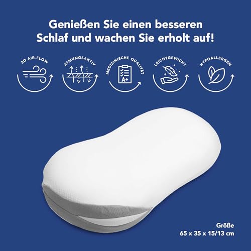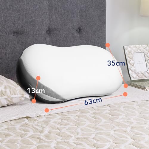 Poduszka ortopedyczna pod kark z wyrównującej nacisk pianki żelowej wiskozowej (Memory Foam) 63 x 35 x 13 cm to innowacyjne rozwiązanie dla osób poszukujących komfortu i wsparcia podczas snu. Ta wyjątkowa poduszka została zaprojektowana z myślą o zapewnieniu optymalnego ułożenia głowy i szyi, aby zapewnić zdrowy i relaksujący sen.