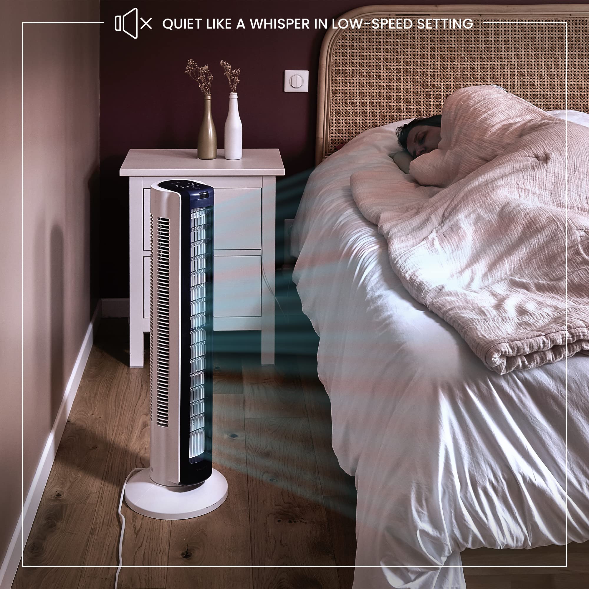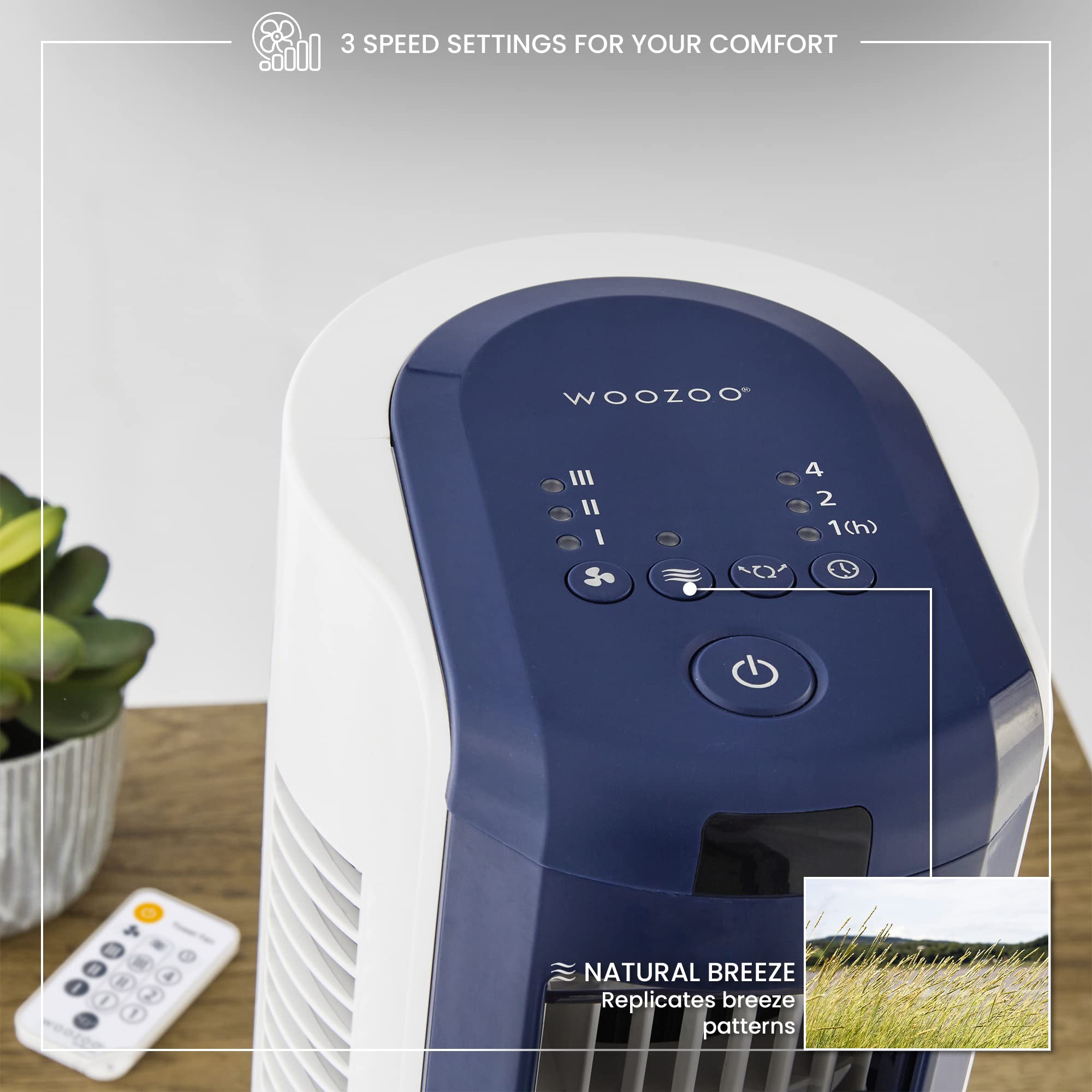 **Cicha praca**: Dzięki innowacyjnej technologii, wentylator Woozoo działa niezwykle cicho, co pozwala na komfortowe korzystanie z niego w nocy lub podczas pracy. Możesz cieszyć się świeżym powietrzem bez zakłócania spokoju.