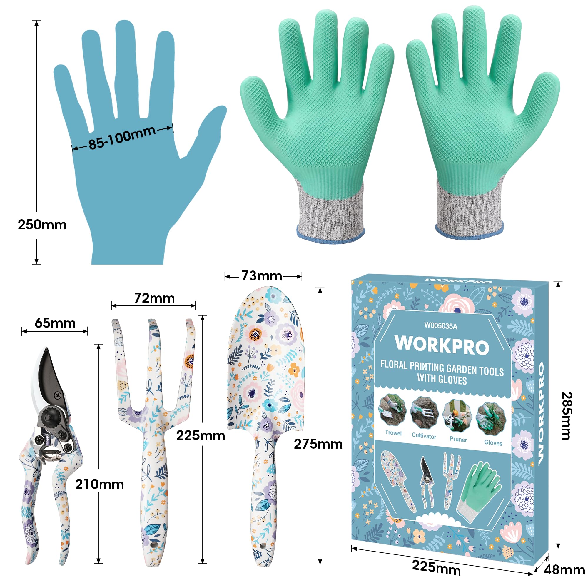WORKPRO 4-częściowy zestaw narzędzi ogrodowych, narzędzia ręczne ze stali nierdzewnej z ergonomicznym uchwytem, w tym sekator, szpadel, widełki ręczne i rękawice ogrodnicze – białe
