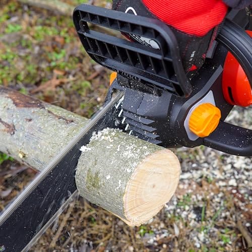 Wygodna konserwacja: ciesz: Wygodna konserwacja: ciesz się łatwą obsługą z automatycznym smarowaniem, które przedłuża żywotność drążka i łańcucha. Ponadto istnieje beznarzędziowe naprężenie i wymiana łańcucha dla łatwego dopasowania i wymiany. Oszczędzaj czas i wysiłek! (Przed użyciem należy uzupełnić olej smarowy, który jest