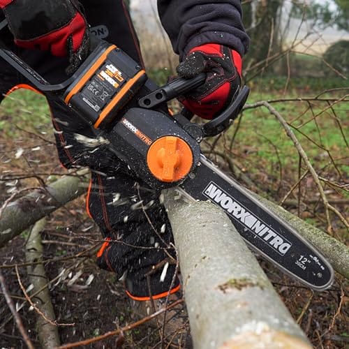 WORX WG350E Nitro profesjonalna akumulatorowa piła łańcuchowa 20 V – wydajna piła do drewna – długość cięcia 10 m/s – 30 cm – kompaktowa i bezpieczna