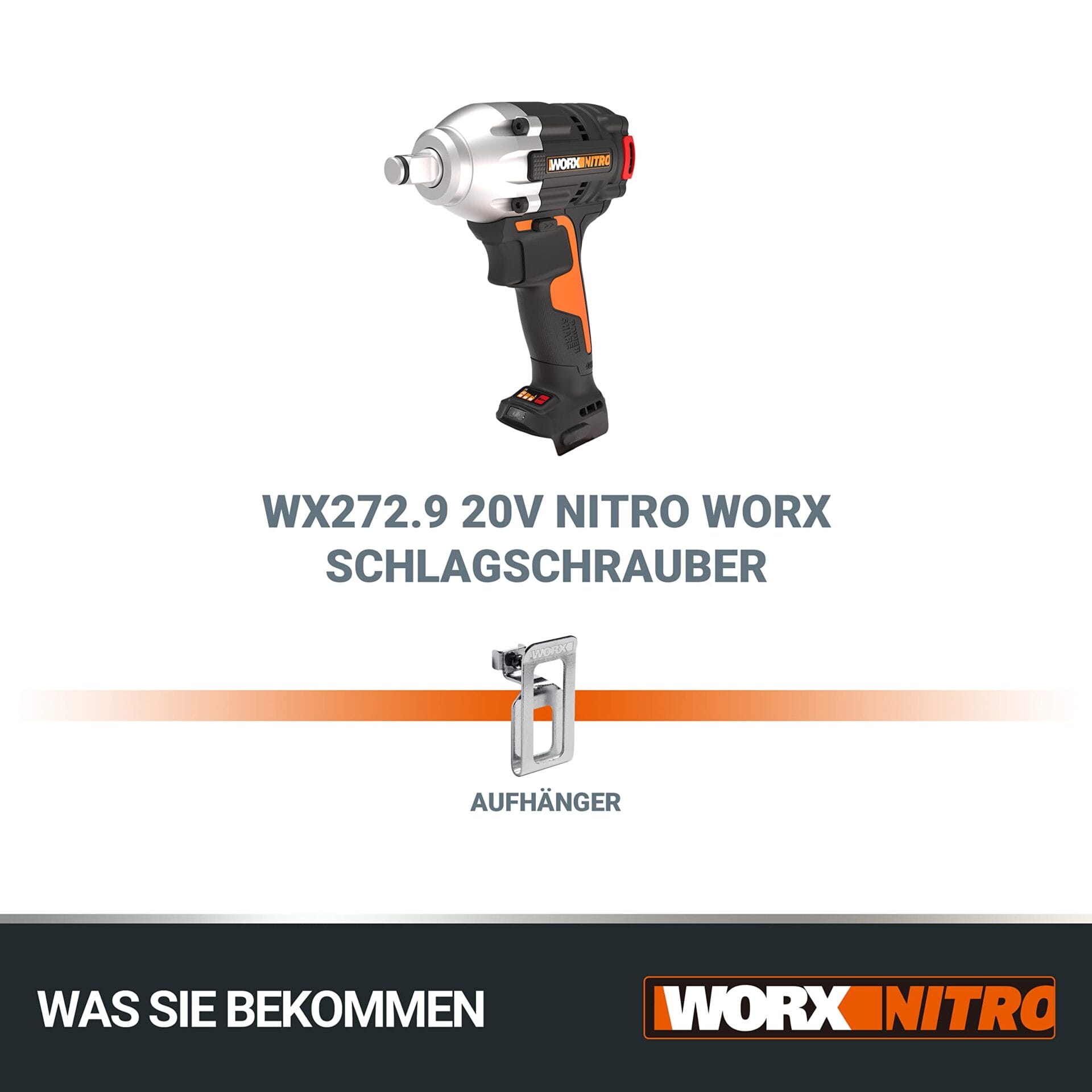 Worx Wx272.9 Wkrętarka Udarowa, Czarny/Pomarańczowy, 24 x 17,3 x 7,2 cm