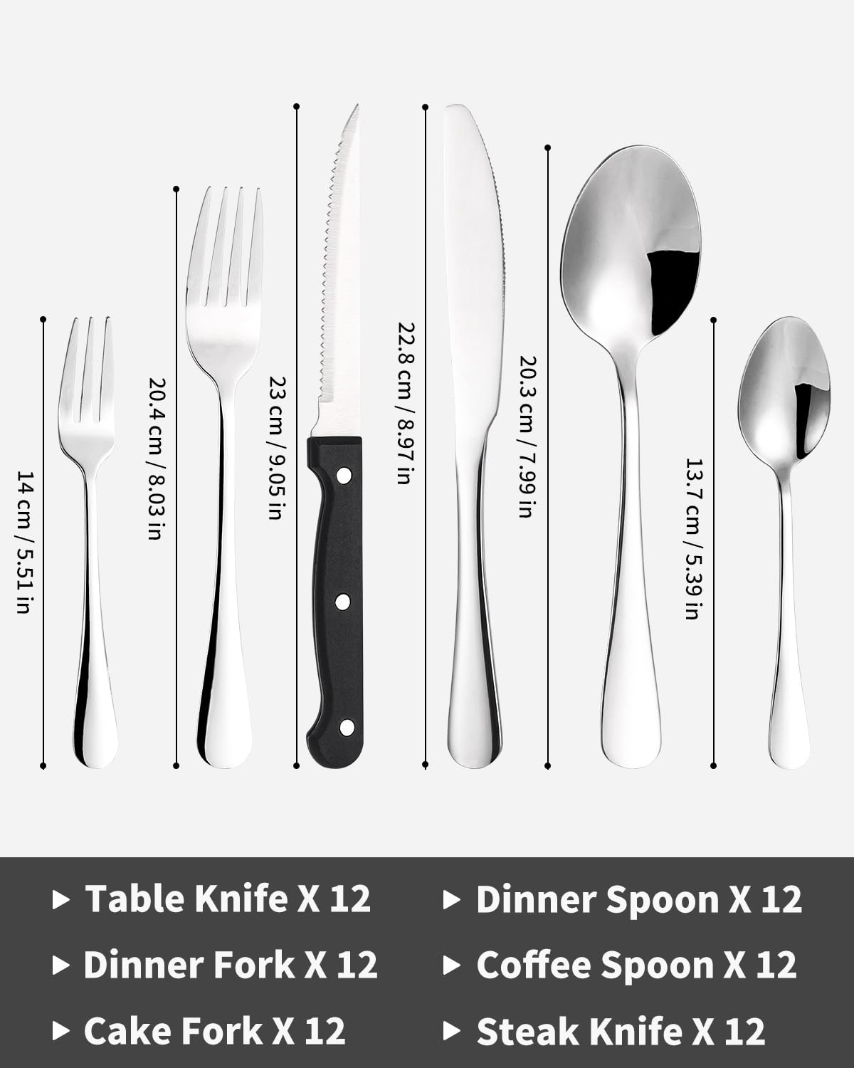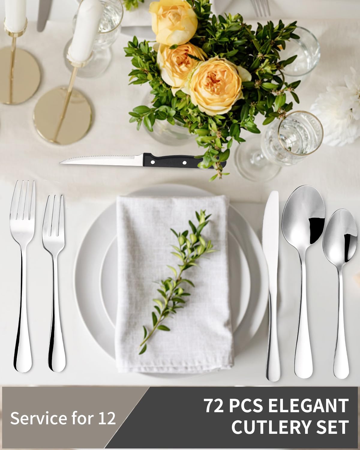 Zestaw sztućców Xespis 72 części dla 12 osób – polerowane, zmywarka, eleganckie