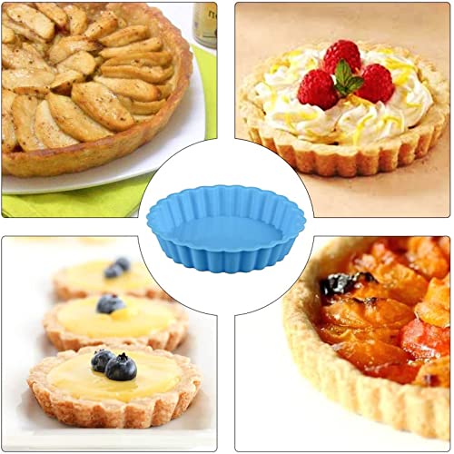 12 sztuk okrągłe ciasto Molds Mini Quiche Foremki nieprzywierające do pieczenia patelni do tartalet galaretki Flan,silikonowa forma do tartaletki (10,8×2,3cm, losowe kolory)