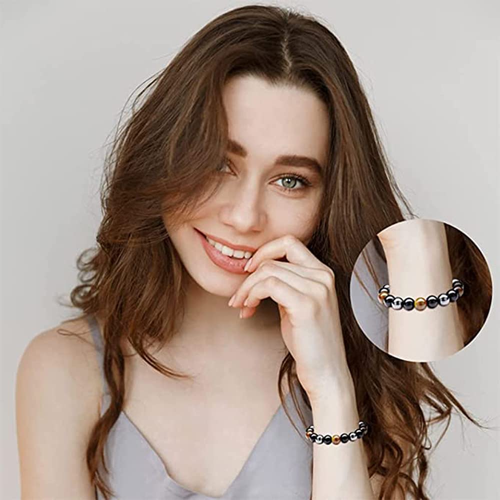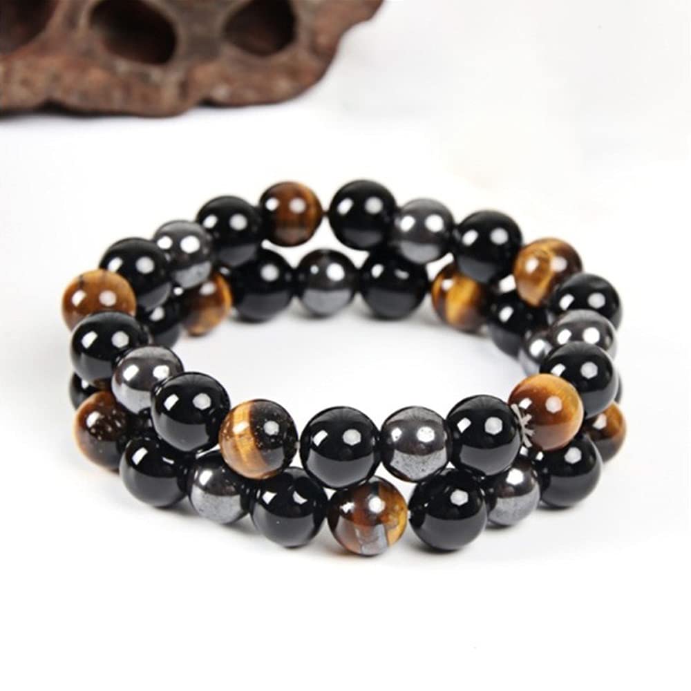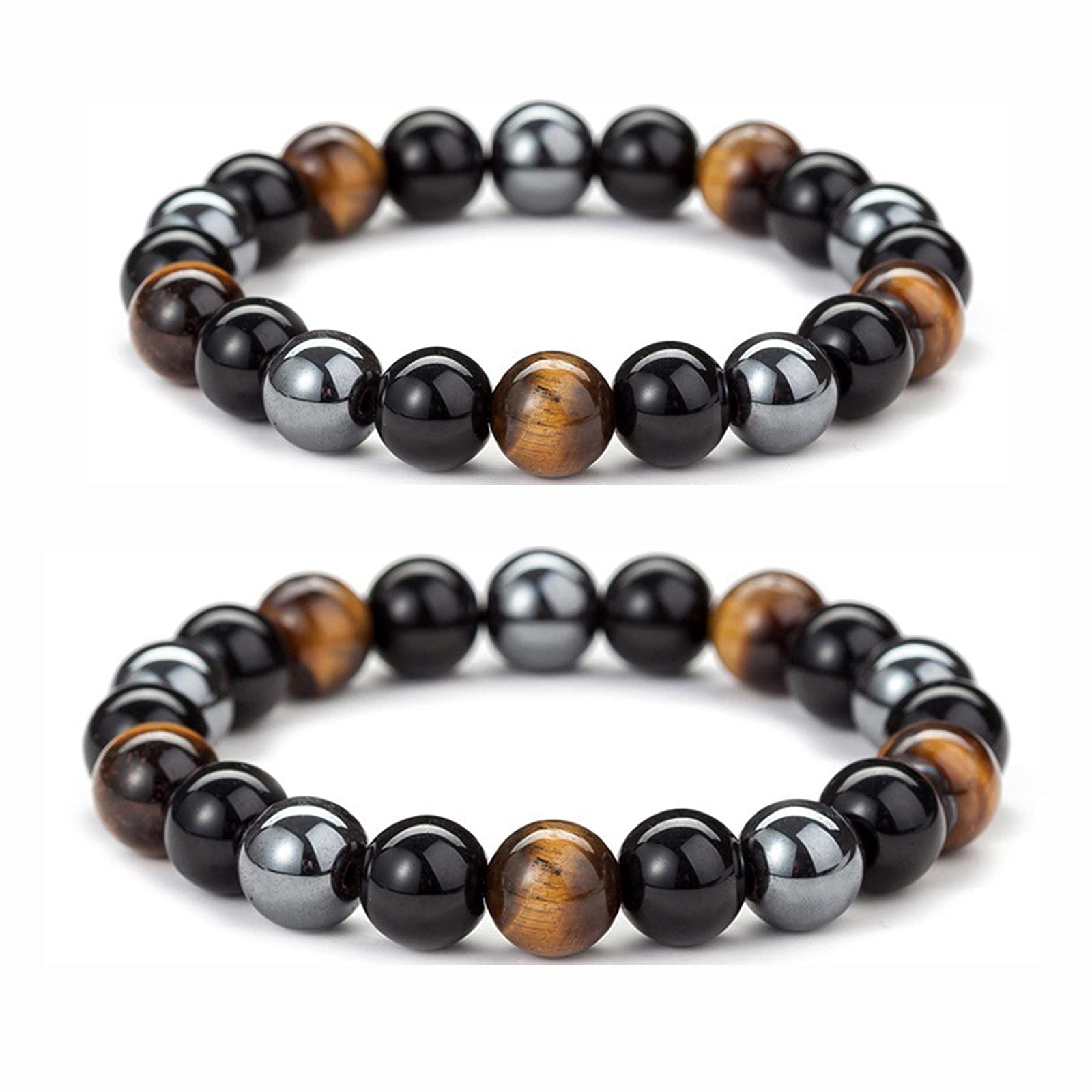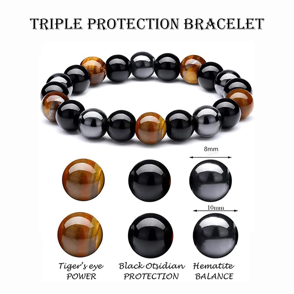 Potrójna ochrona Bransoletka z kamienia naturalnego, 2 szt., tygrysie oko hematyt obsydianowy Kamień, uzdrawiająca przynosi szczęście i dobrobyt, unisex