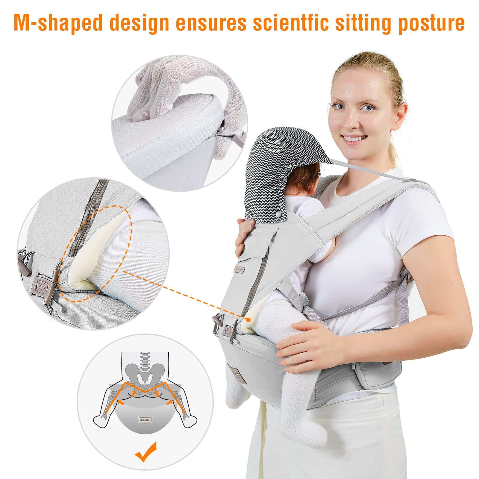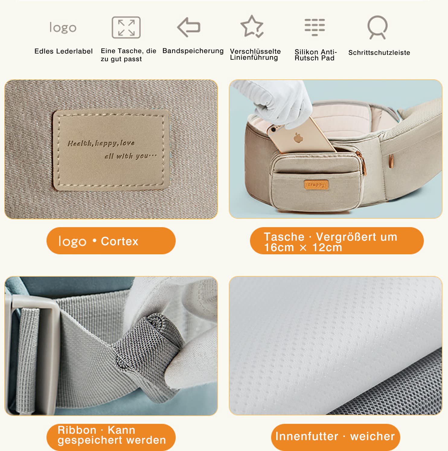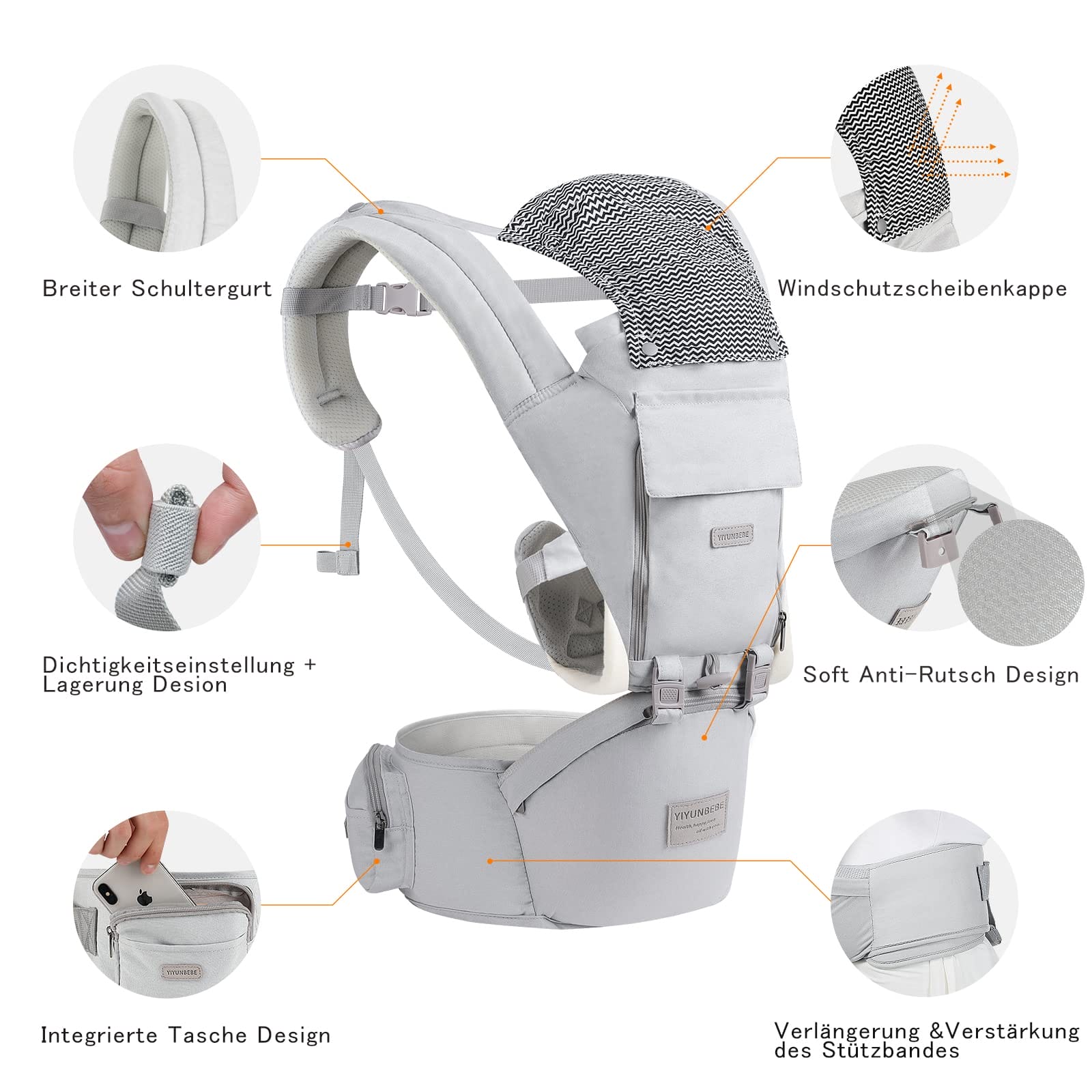 - 【 komfortabel Hüftsitz】:Hüftsitze mit einer Länge von 22 Zentimetern, einer Höhe von 25 Zentimetern und einer Breite von 15 Zentimetern,Die Oberfläche besteht aus Silikon Anti Rutsch Pad,ist mit atmungsaktivem Schwamm gefüllt,Dämpfungsleistung um die Luftzirkulation zu erhöhen.ermöglicht es Babys bequem darauf zu sitzen,anstatt in den Gurten gefangen zu werden.Die Oberschenkel des Babys haben eine große Auflagefläche an der Basis, was die Lendenwirbelsäule arbeitssparender macht.
