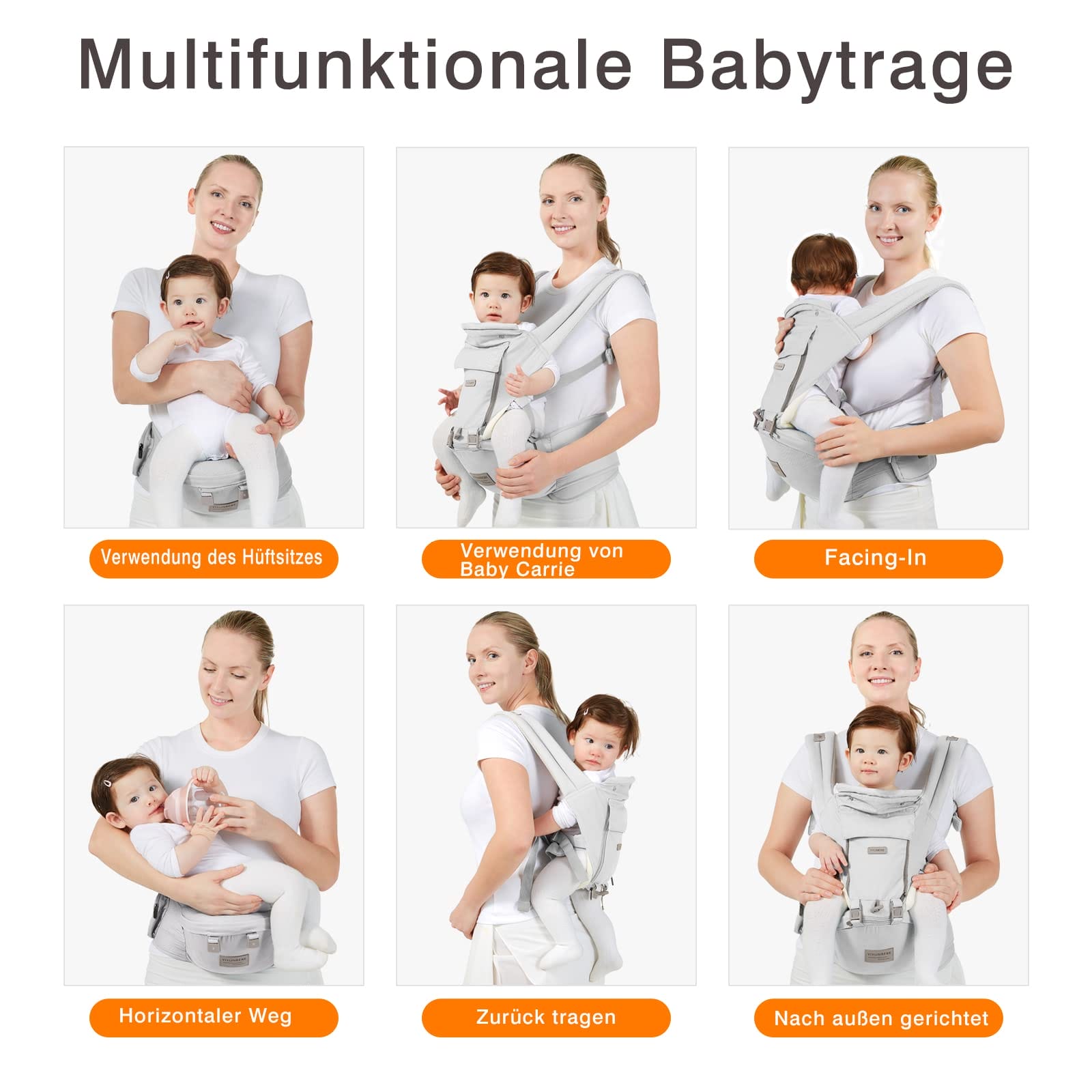 - 【Modernstes und umweltfreundlicheres Design】:Hergestellt aus 100% reine Baumwolle Baumwolle, die atmungsaktiver und bequemer ist als gewöhnlicher Baumwollstoff.Ausgestattet mit einem Hüftsitz, einem integrierten Schultergurt, der für Brust tragetuch baby, einer sonnen- und windabweisenden Schlafmütze und Tasche zur Aufbewahrung diverser Gegenstände.
