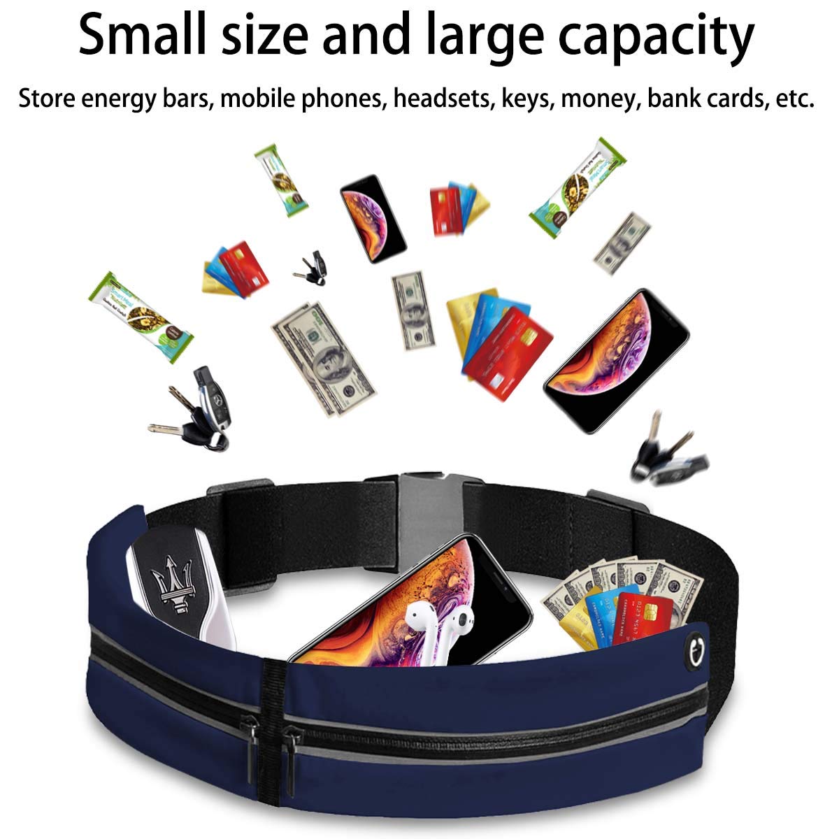 • ✔【Cechy produktu】Duża kieszeń zapinana na zamek błyskawiczny z portem na słuchawki, dwie osobne rozszerzane kieszenie zapinane na zamek błyskawiczny na wszystkie niezbędne przedmioty, w tym klucze, słuchawki, gotówkę, dowód osobisty, karty kredytowe i smartfon o przekątnej do 16,5 cm, zapewniają bezpieczeństwo i ochronę Twojego towaru.