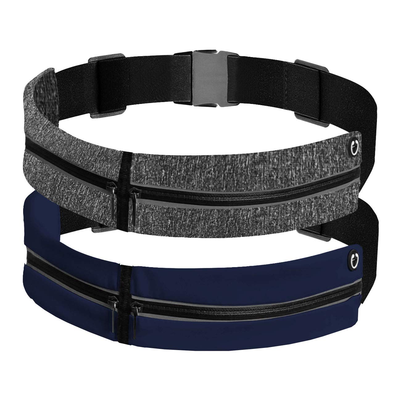 Yichong 2 szt. wodoodporny pasek do biegania na zewnątrz podwójna torebka odporna na pot odblaskowa nerka z regulowanym elastycznym paskiem (ciemnoszary-granatowy)