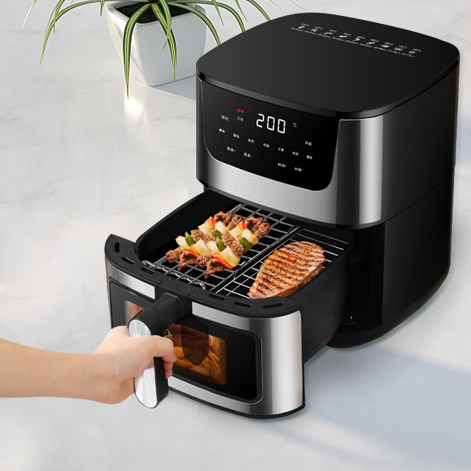 ✅ Klasa spożywcza: Stojak: Klasa spożywcza: Stojak na frytownicę powietrzną jest wykonany z pogrubionej stali nierdzewnej 304 przeznaczonej do kontaktu z żywnością, odpornej na wysoką temperaturę, korozję, może być używany przez długi czas i wspomaga czyszczenie zmywarki