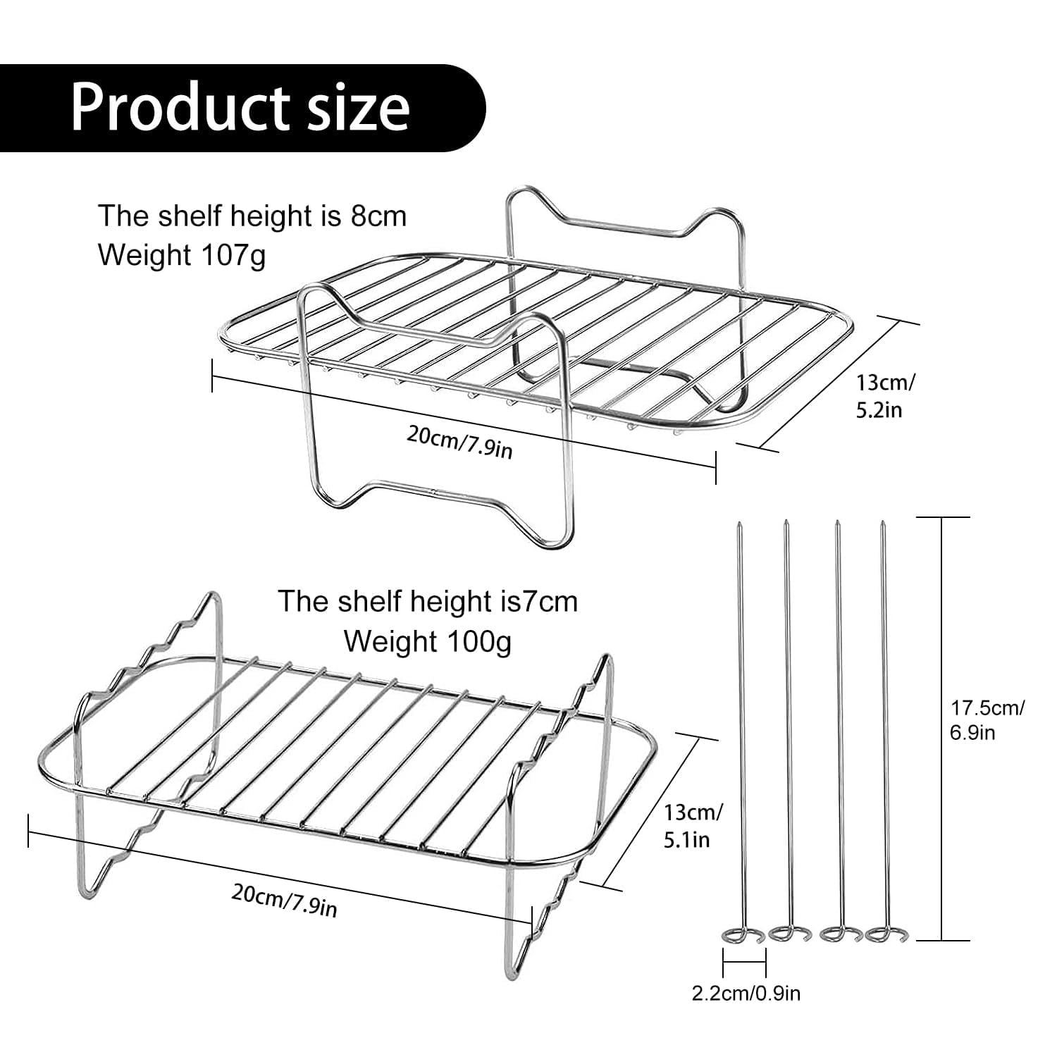 ✅ [Rozmiar] Stojak na: [Rozmiar] Stojak na frytownicę powietrzną 20 x 13 x 7 / 8 cm, szpikulce 17,5 x 2,2 cm, wysoka kompatybilność, kompatybilny z dwustrefową frytkownicą powietrzną AF300UK/AF400UK (pojemność wszystkich 7,6 l – 9,5 l)