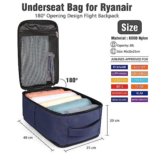 ✅ [Idealny bagaż podręczny: [Idealny bagaż podręczny do Ryanair 40x20x25 cm] Plecak o wymiarach 40 x 20 x 25 cm i pojemności 20 litrów został zaprojektowany ściśle według wytycznych linii Ryanair. Pozwala na podróżowanie bez opłat za dodatkowy bagaż. Idealnie pasuje również do linii Wizz Air, EasyJet, Lufthansa oraz wielu inny