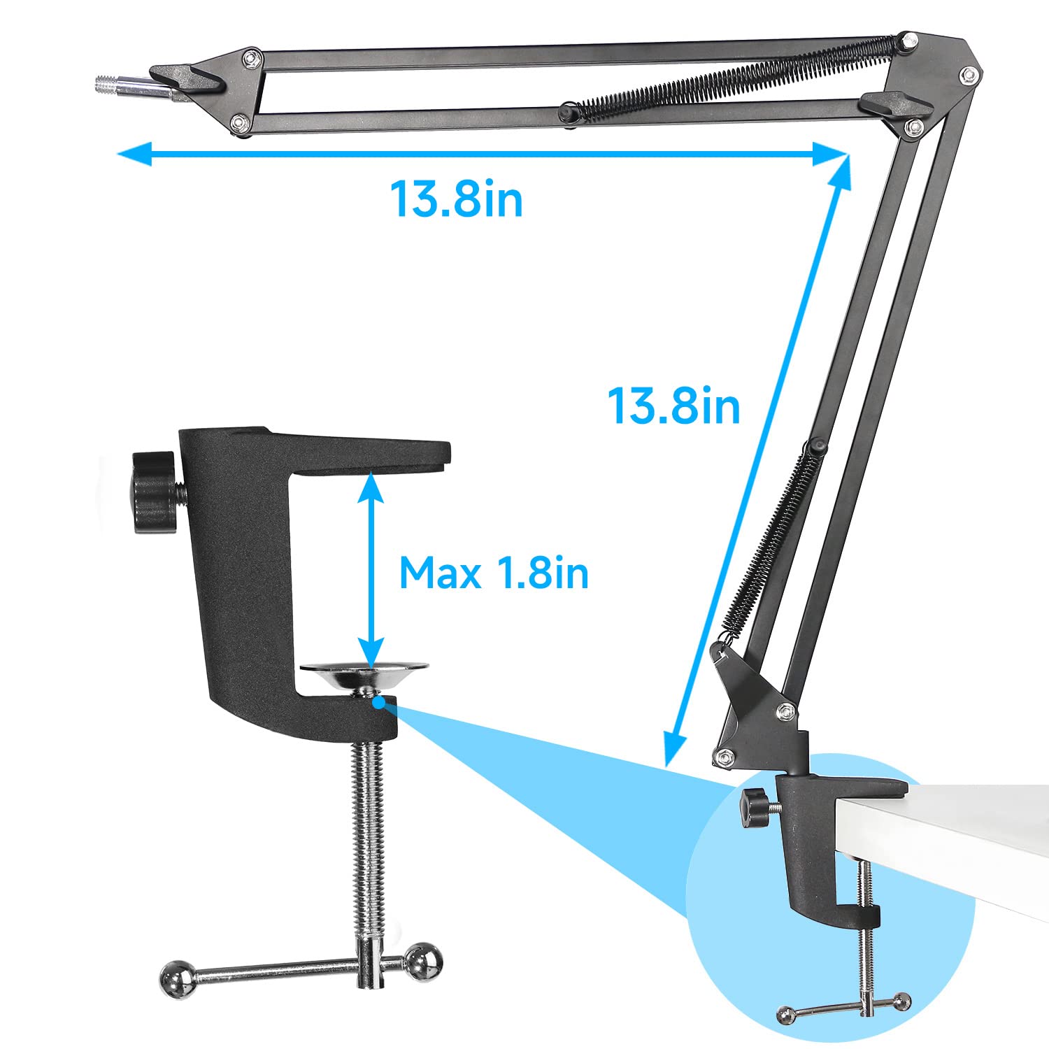 ✅ Stabilny stojak mikrofonowy: Stabilny stojak mikrofonowy – wykonany ze stabilnej konstrukcji stalowej, podwójne sprężyny amortyzujące każdego ramienia wysięgnika utrzymują mikrofon na miejscu bez zwisania, upadku lub podrygiwania.