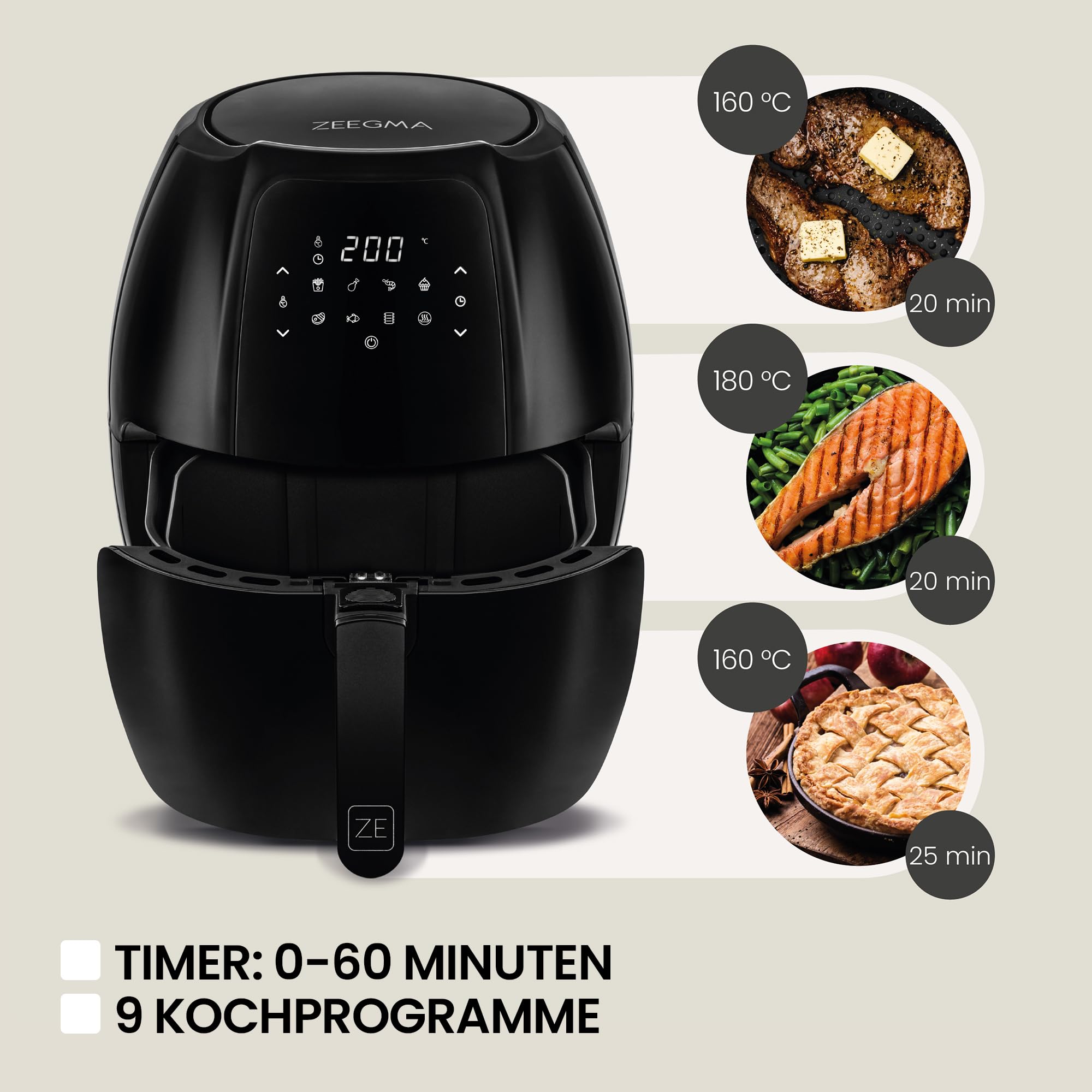 Frytkownica ZEEGMA Knapper Grand to must-have dla każdego, kto pragnie cieszyć się smacznymi, zdrowymi potrawami w szybki i prosty sposób. Dzięki beztłuszczowemu działaniu, bogatej gamie programów oraz wysokiej wydajności, stanie się niezastąpionym elementem Twojej kuchni. Niezależnie od tego, czy jesteś zapalonym kucharzem, czy amatorem gotowania, ZEEGMA Knapper Grand pomoże Ci w codziennych kulinarnych wyzwaniach. Wybierz zdrowie, smak i komfort – postaw na ZEEGMA Knapper Grand!