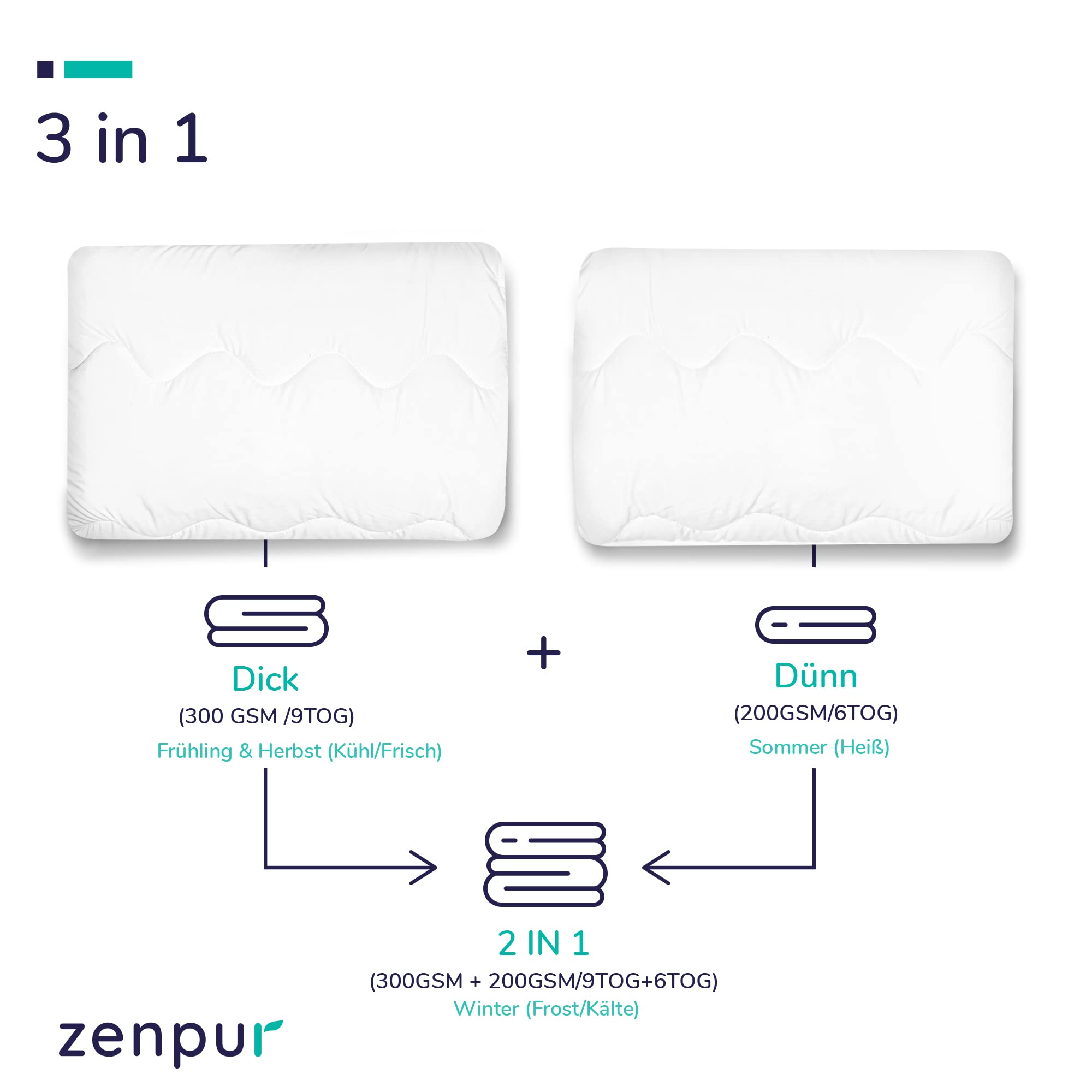 ZenPur kołdra 4 pory roku to nie tylko produkt funkcjonalny, ale także elegancki i stylowy dodatek do każdej sypialni. Dzięki jej uniwersalnemu rozmiarowi 135 x 200 cm, pasuje do większości łóżek i pozwala cieszyć się komfortem snu bez względu na preferencje temperaturowe.
