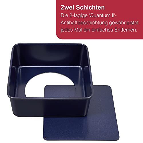 Kwadratowa forma do: Kwadratowa forma do ciasta 20 cm z trwałą, nieprzywierającą powłoką jest wykonana z ciężkiej stali węglowej, zaprojektowanej tak, aby równomiernie rozprowadzać ciepło