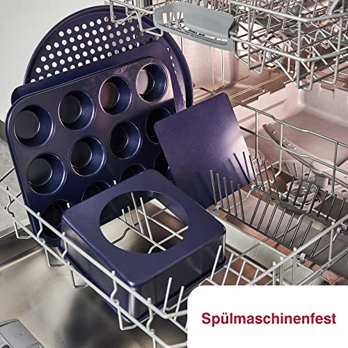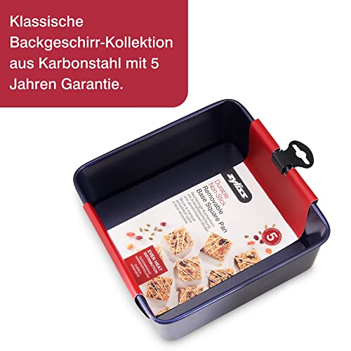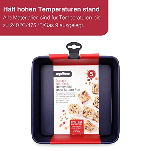 Zyliss E980201 nieprzywierająca kwadratowa forma do ciasta, 20 cm, stal węglowa, ciemnoniebieska, blacha do pieczenia, nadaje się do mycia w zmywarce
